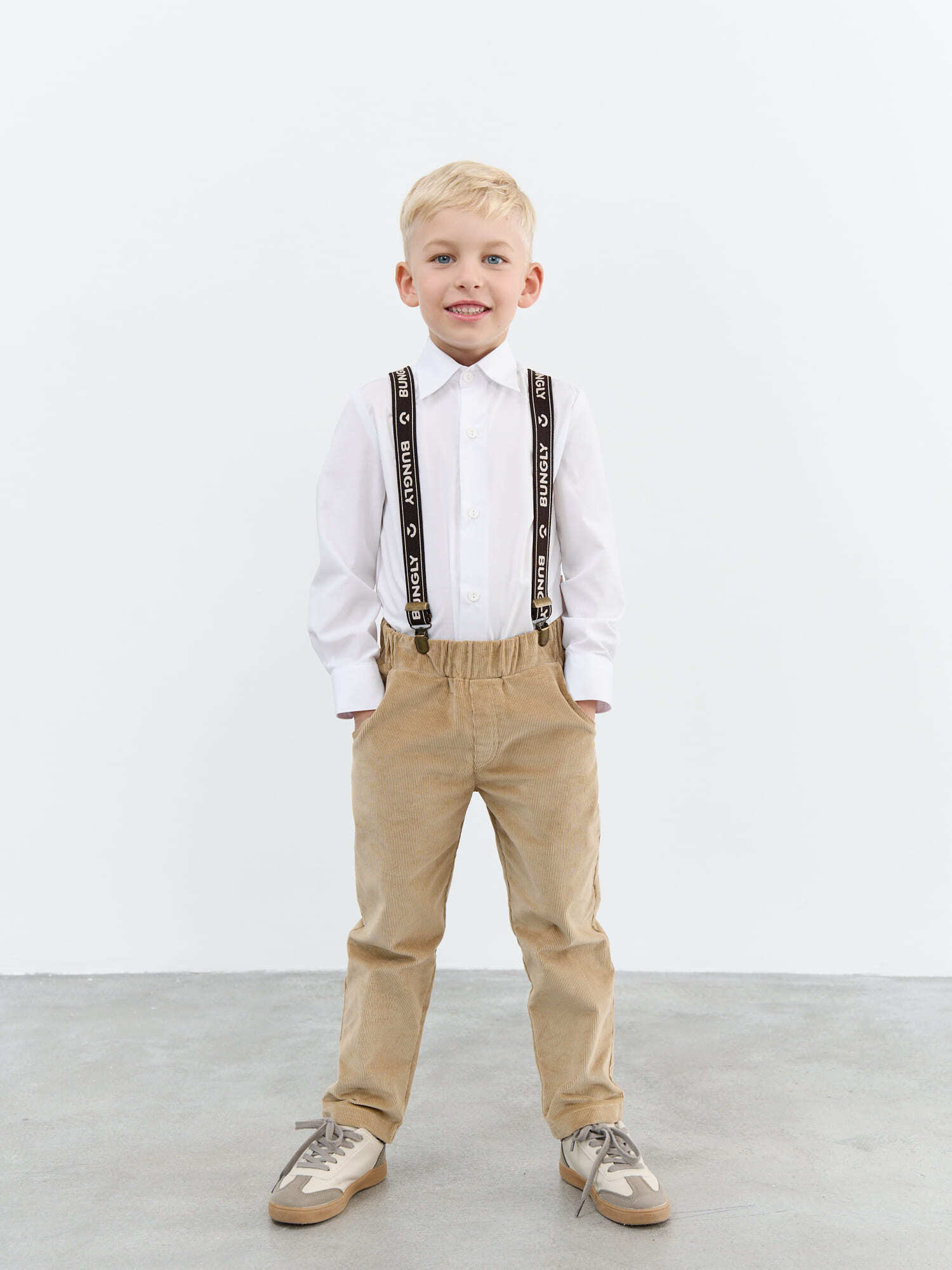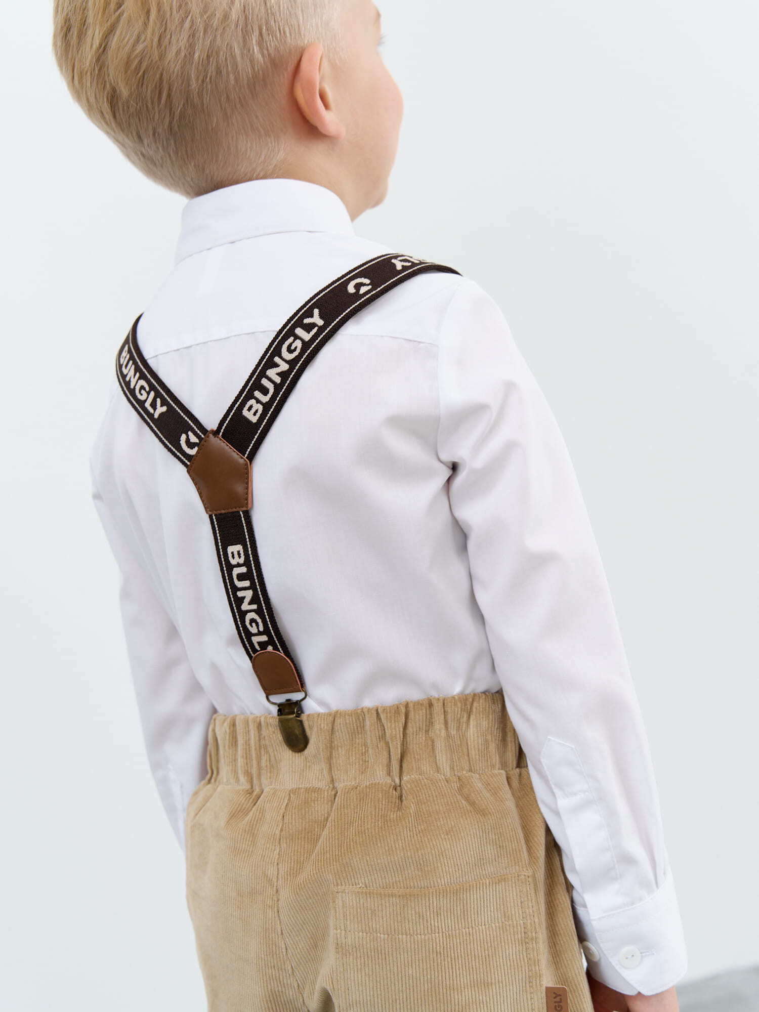 Подтяжки из брендированной эластичной резинки надёжно держат брюки даже во время самых энергичных игр – можно прыгать, бегать и кувыркаться без страха, что что-то сползёт.