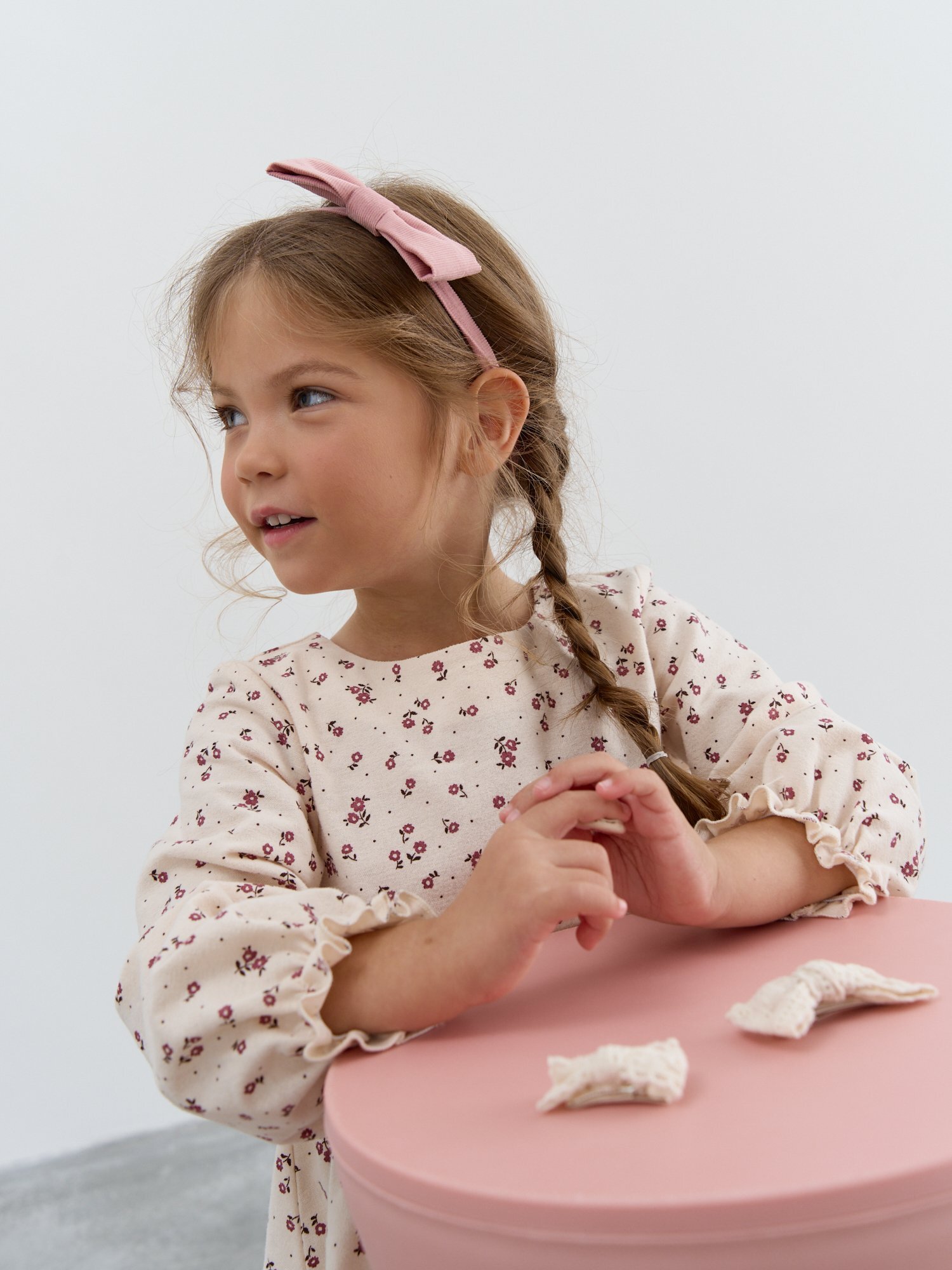 Мягкий вельвет приятно прилегает к коже и добавляет образу нежности, а эластичная резинка надёжно фиксирует повязку на голове, не давит и не сползает даже во время активных игр или танцев.