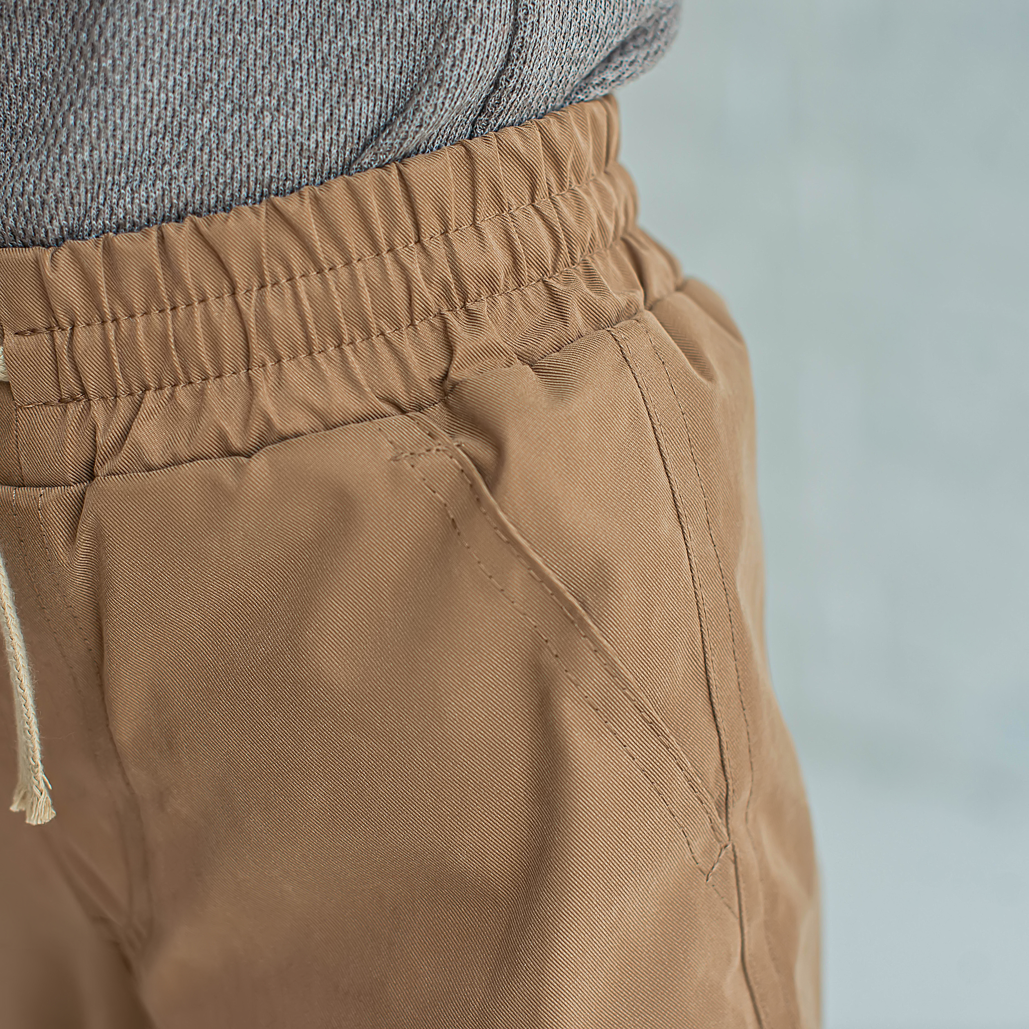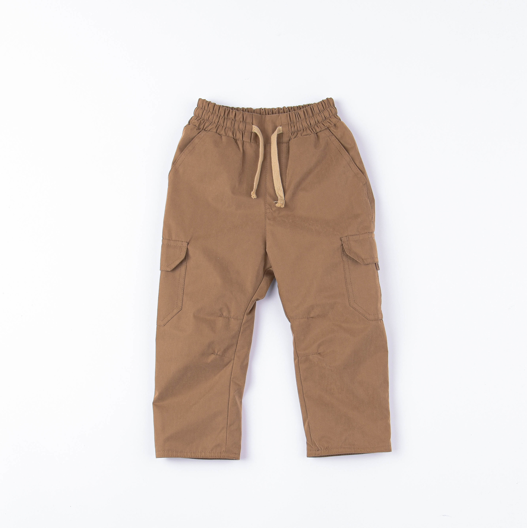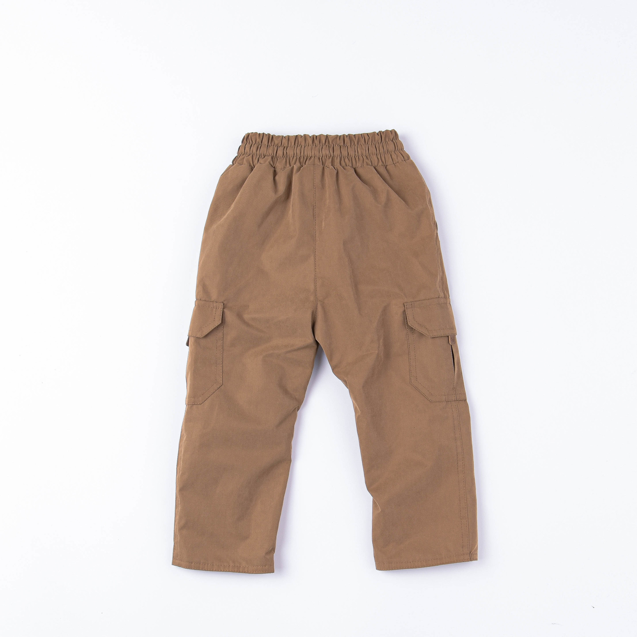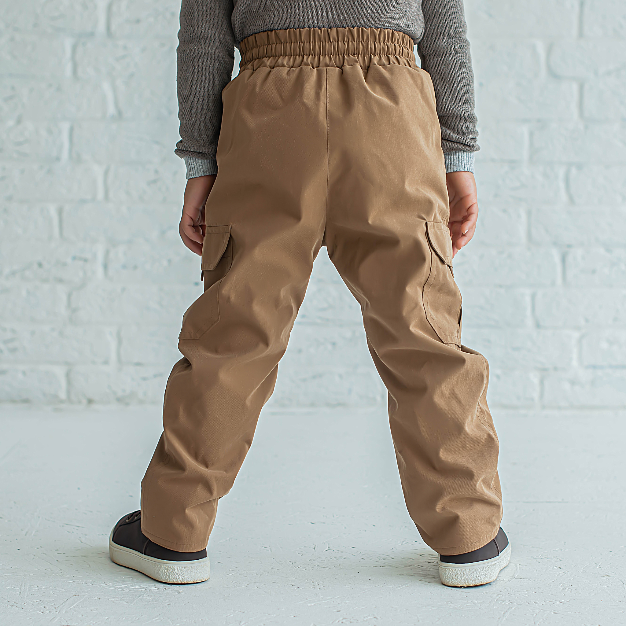 Демисезонные брюки прямого силуэта с водо- и грязеотталкивающим покрытием. Подкладка из полибрушета сохраняет тепло. Широкий пояс с резинкой дополнен шнуром для комфортной посадки по фигуре. Боковые карманы в районе бедер и накладные карманы с клапаном в районе колен. Ложный гульфик. На штанинах предусмотрен отворот для регулирования длины.