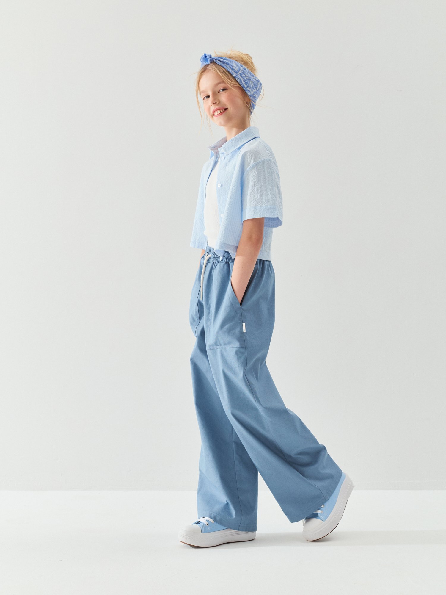 Мягкая резинка со шнурком надежно фиксирует брюки на талии.