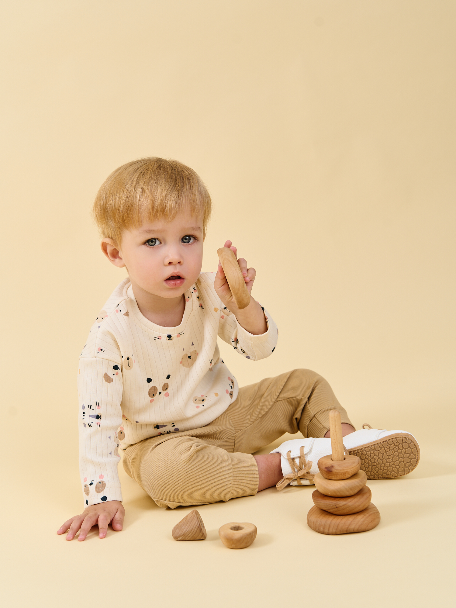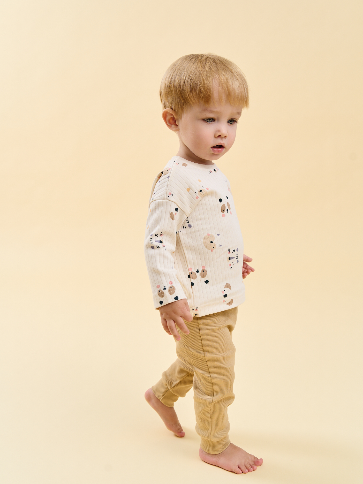 Свободный крой со спущенным шагом комфортен для ношения с подгузником и не стесняет малышей в играх и прогулках.