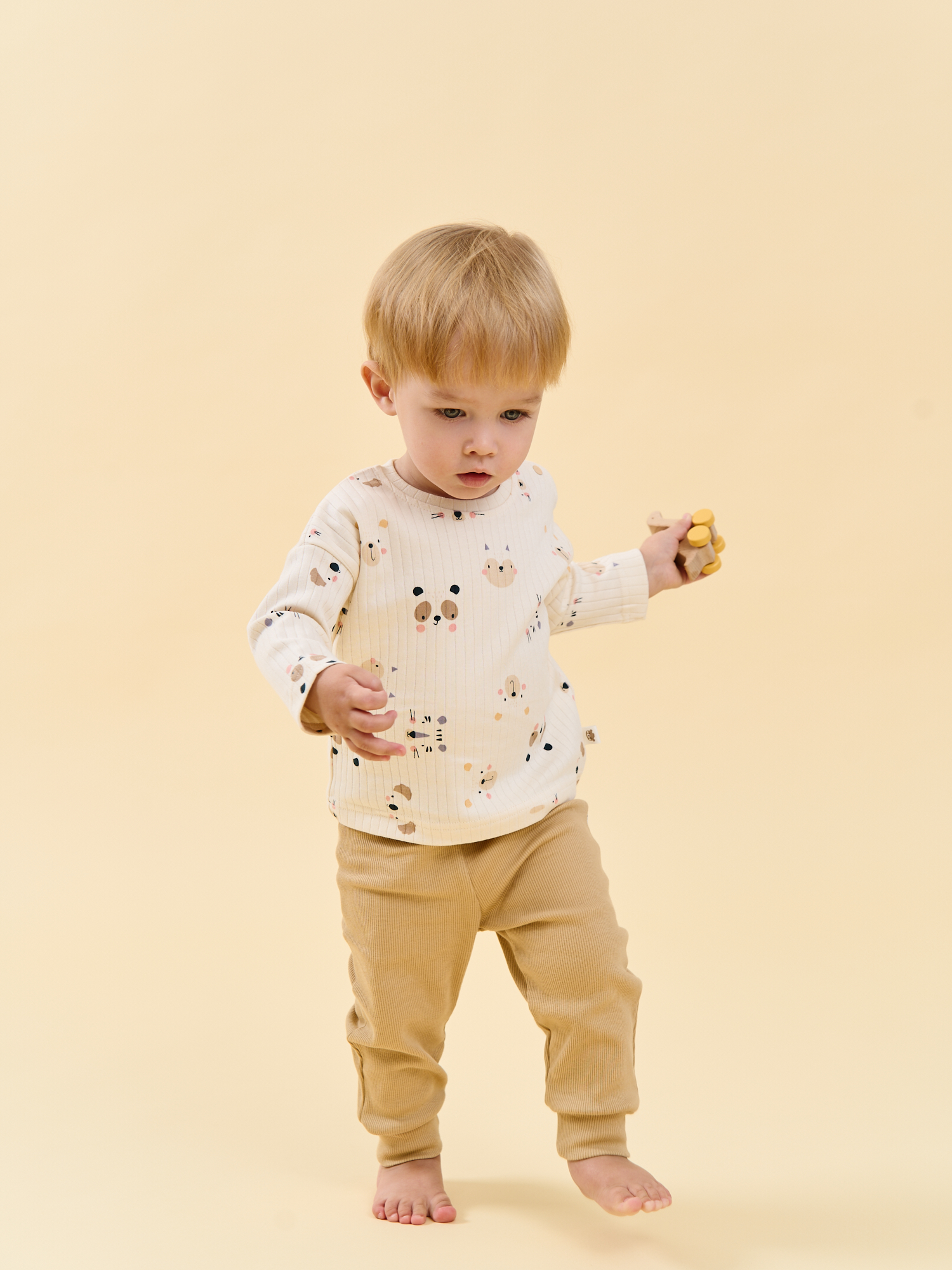 Эластичная резинка в поясе мягко фиксирует, не сдавливая животик, а манжеты по низу удерживают штанишки на месте даже при активных движениях.