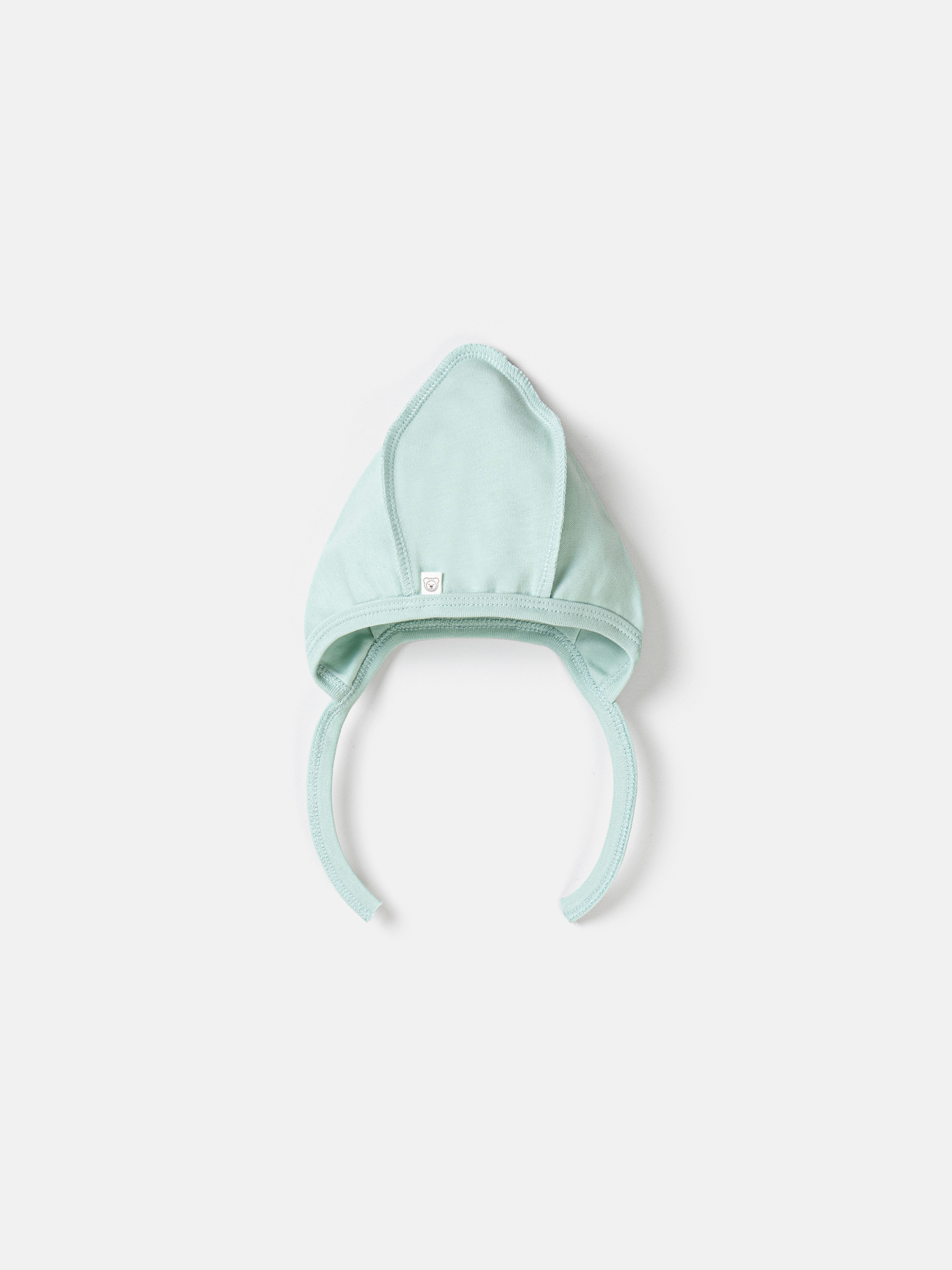 Удобный чепчик заостренной формы нежно облегает голову и прикрывает ушки, а мягкие завязки надежно фиксируют его.
