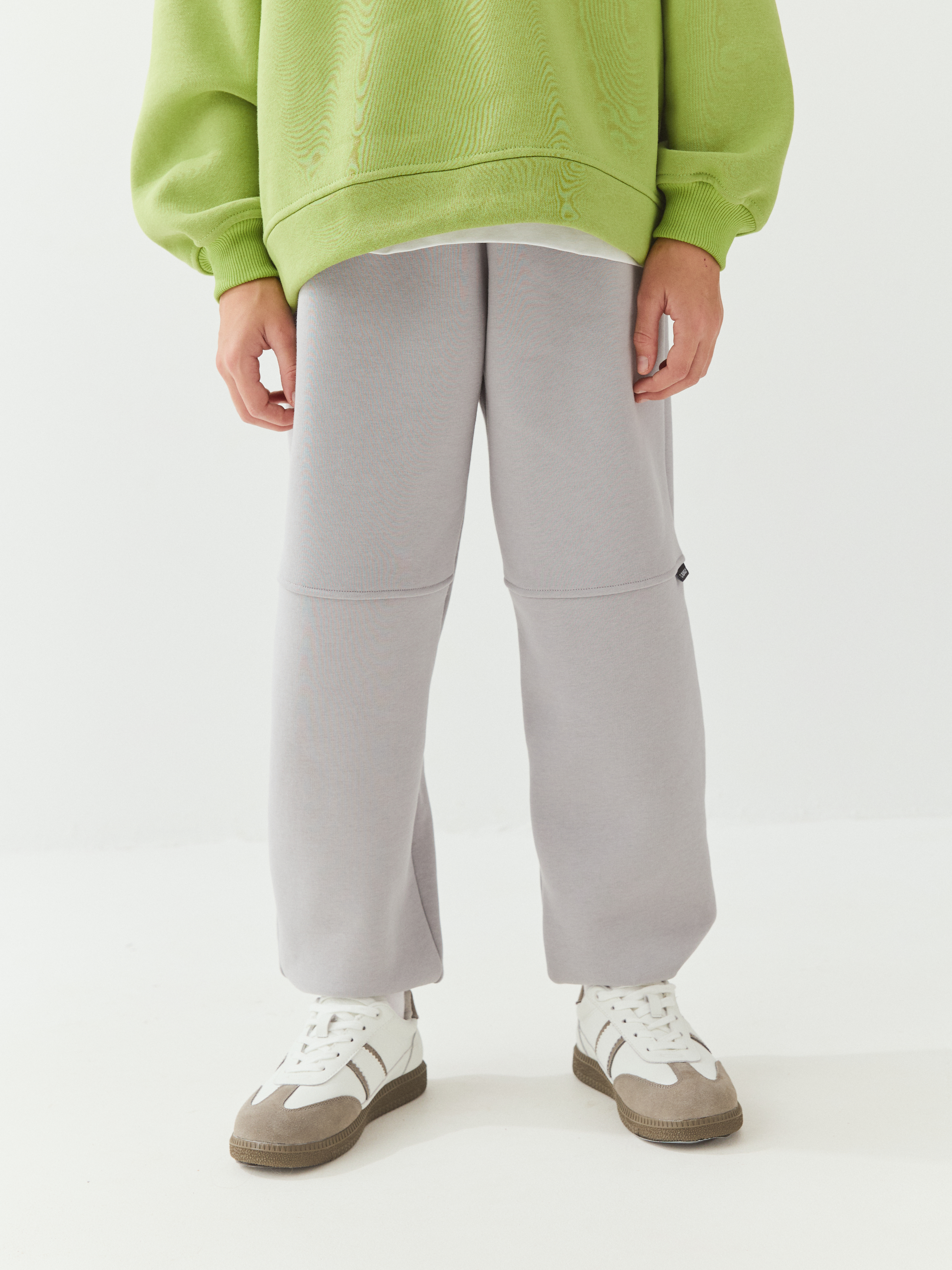 Теплые джоггеры со стильными подрезами выше колена — универсальная модель на зиму.