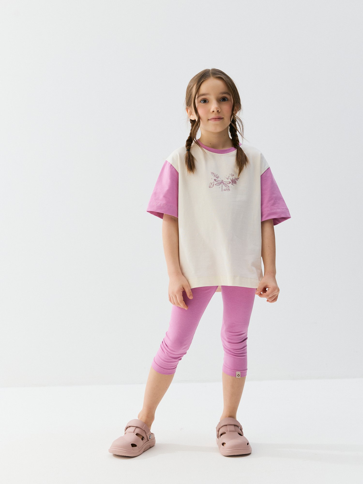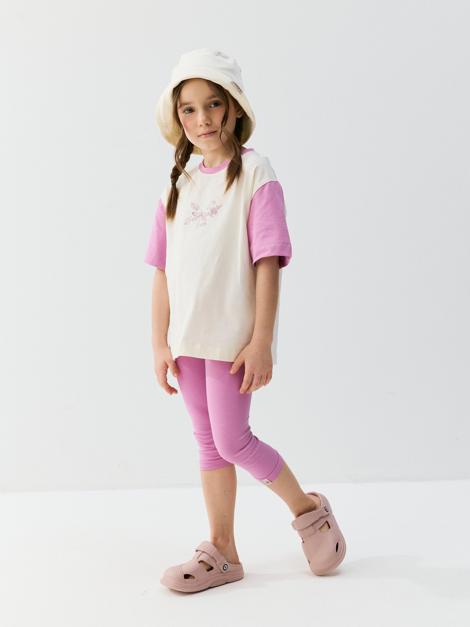 Футболка-оверсайз со стойким принтом и цветными рукавами для освежающих образов.