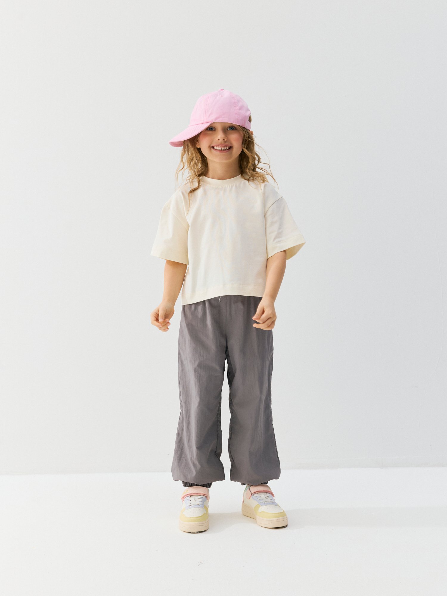 Спущенный рукав и расширенные плечи позволяют двигаться свободно.