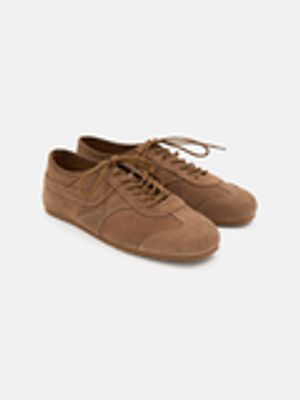 Конструкция усилена замшевыми накладками в области носка и пятки.