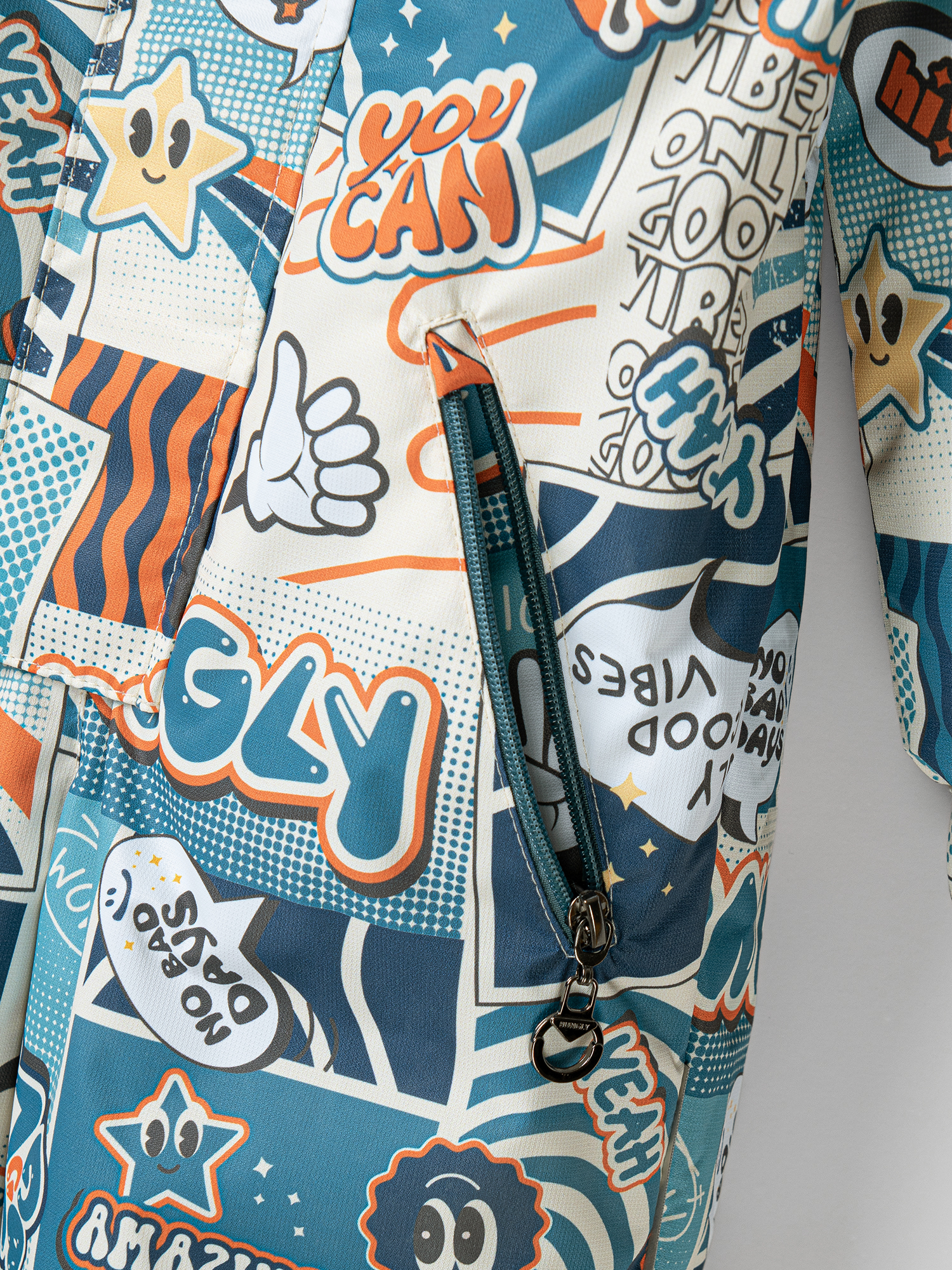 Застежка на молнию с защитой от защемления и ветрозащитной планкой на магнитных кнопках.