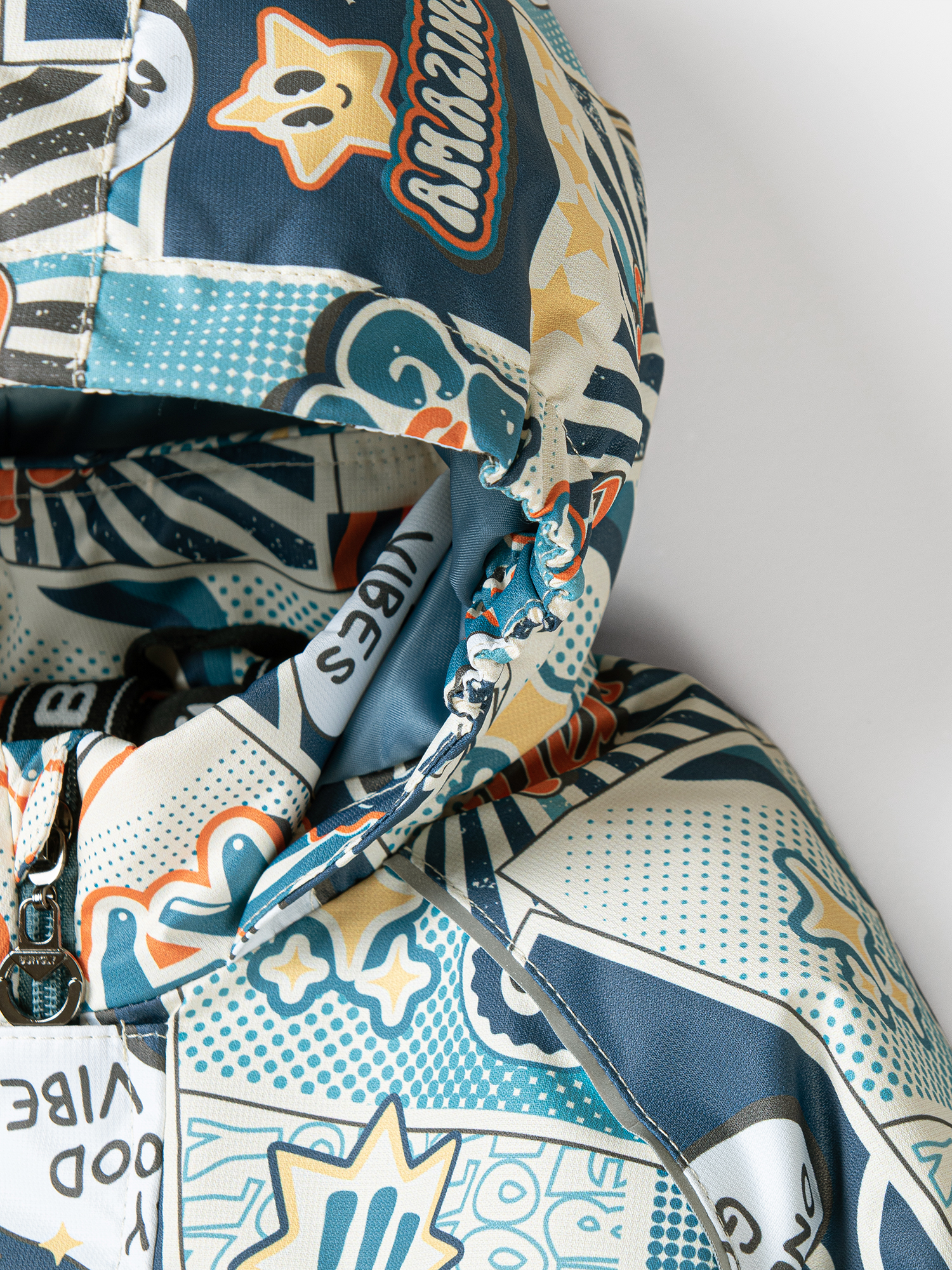 Несъемный капюшон с утяжкой на резинке для защиты от продувания.