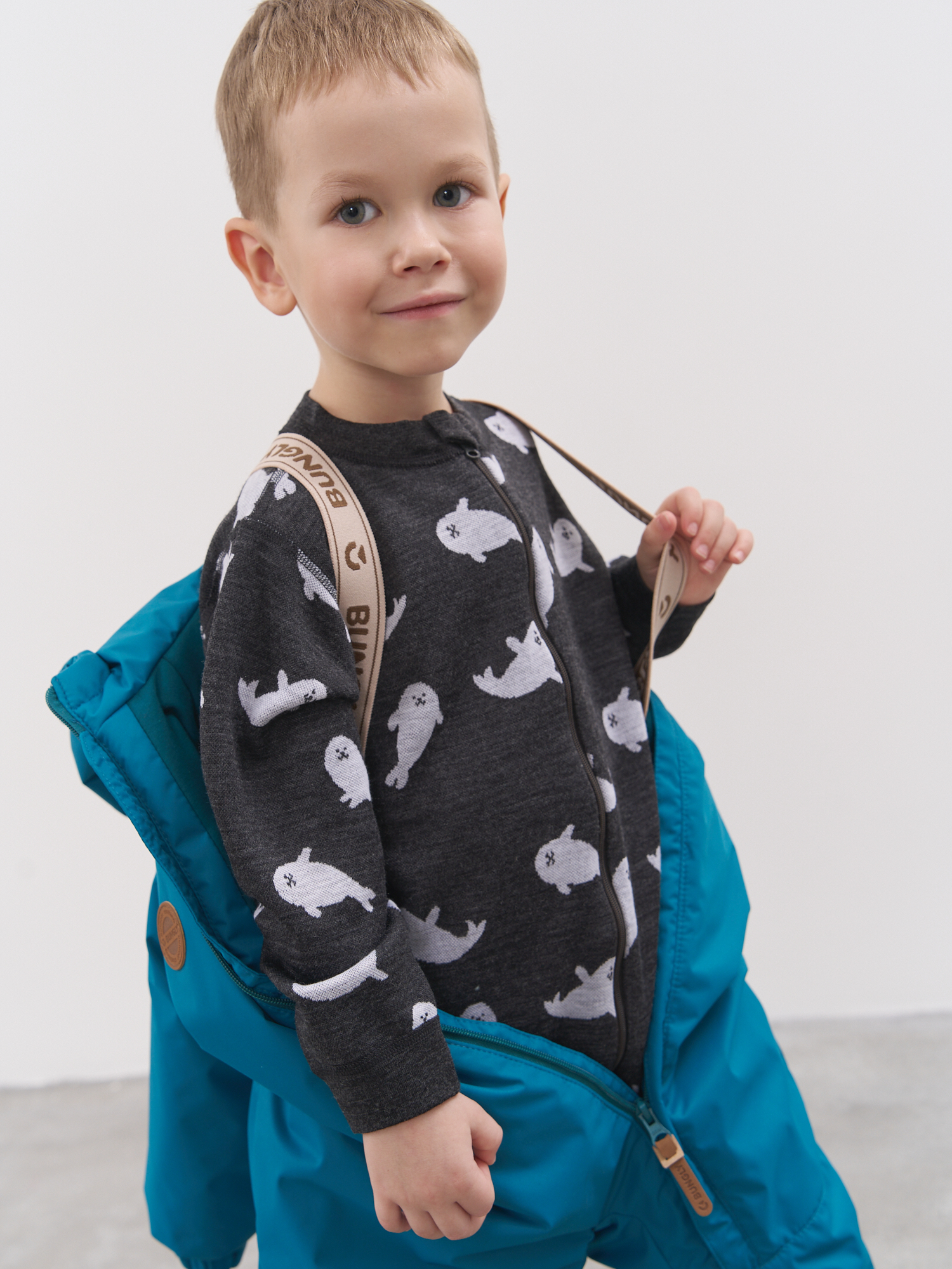 Застёжка-молния с ветрозащитной планкой и защитой от защемления подбородка. Низ молнии специально отведён на левую ногу для комфортного ношения и одевания малыша.