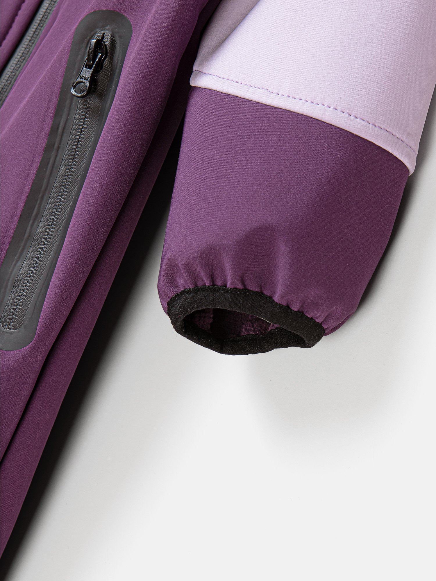 Мембранная ткань софтшелл в стиле колор-блок с показателями 5000/5000 защищает от влаги и ветра.