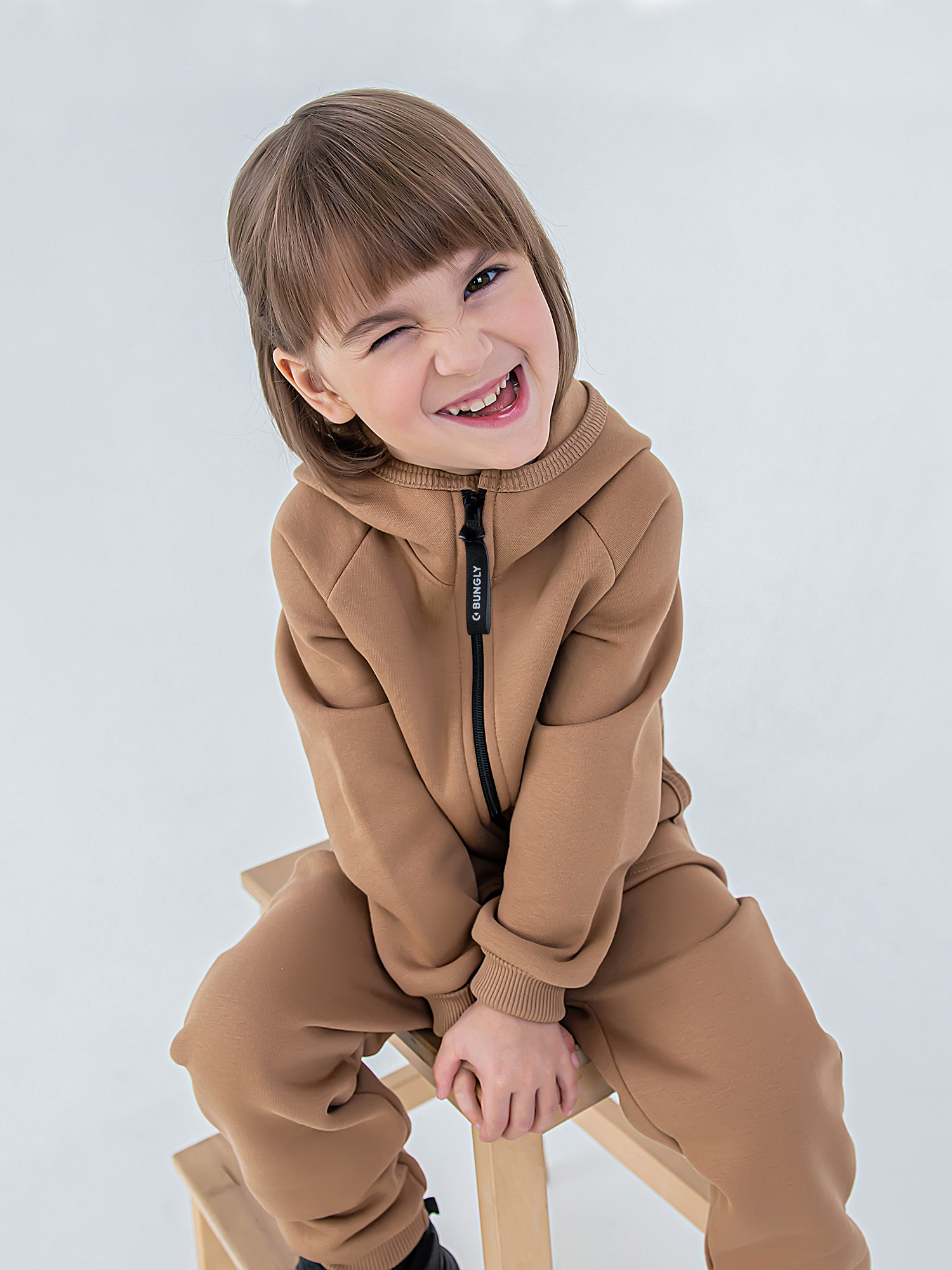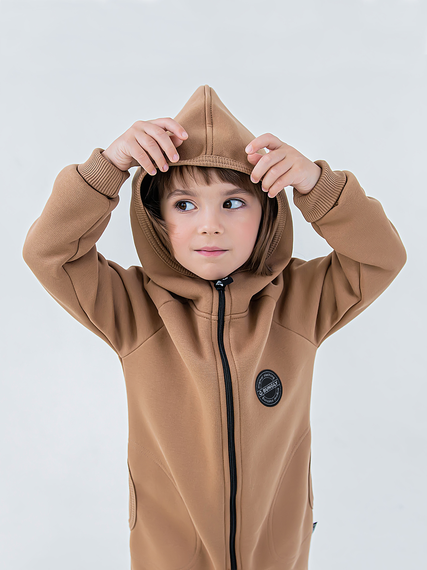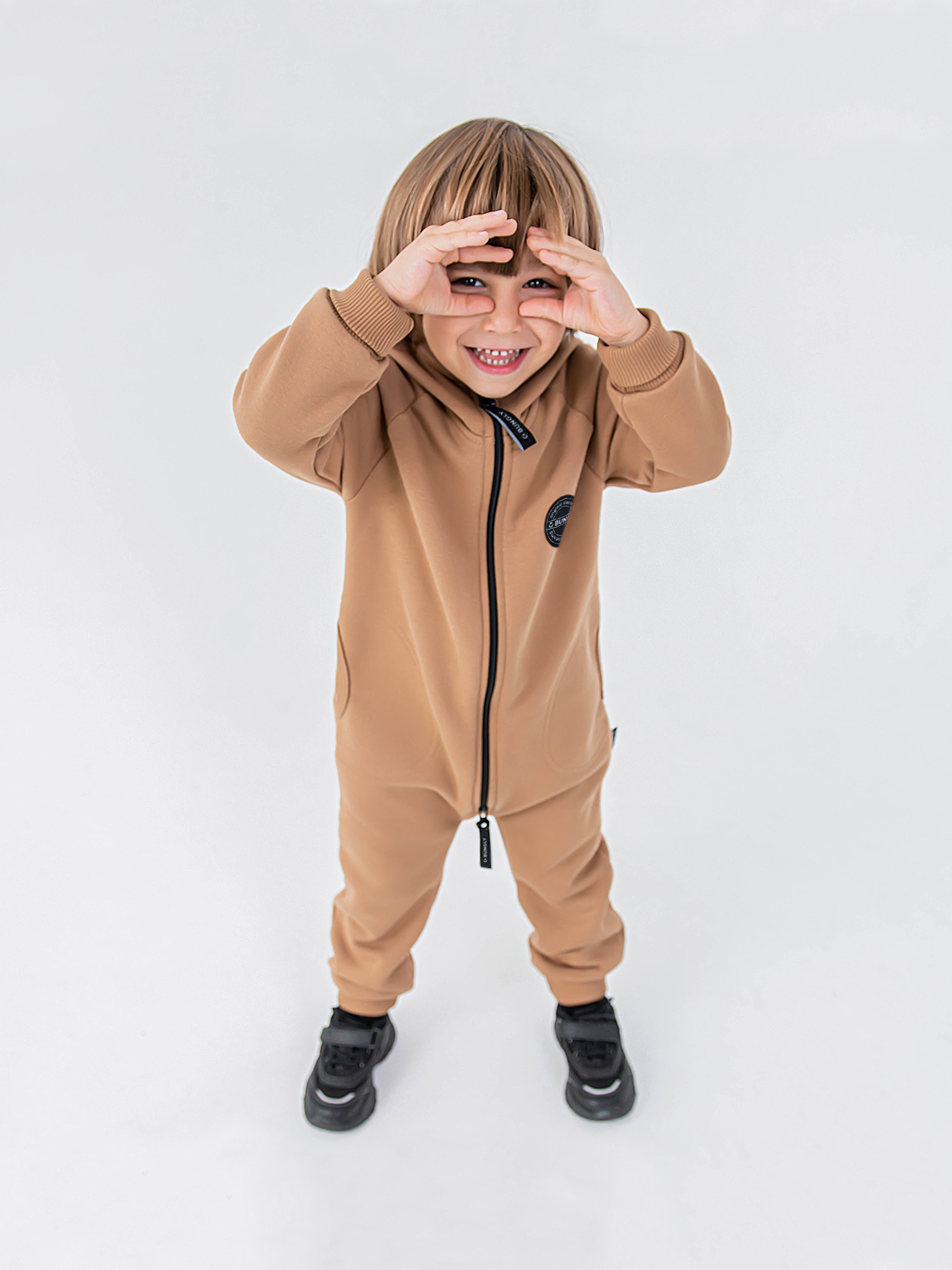 Утепленный комбинезон из плотного трикотажа с начесом на изнанке. Глубокий капюшон и воротник-стойка надежно прикрывают шею и голову. Застежка на молнию дополнена ветрозащитной планкой по всей длине. Удлиненные манжеты на рукавах и штанинах «растут» вместе с ребенком. Боковые карманы. Двойной бегунок для удобства туалета. Благодаря продуманному крою комбинезон не сковывает движения ребенка, а резинка на спине гарантирует идеальную посадку на любой фигуре.