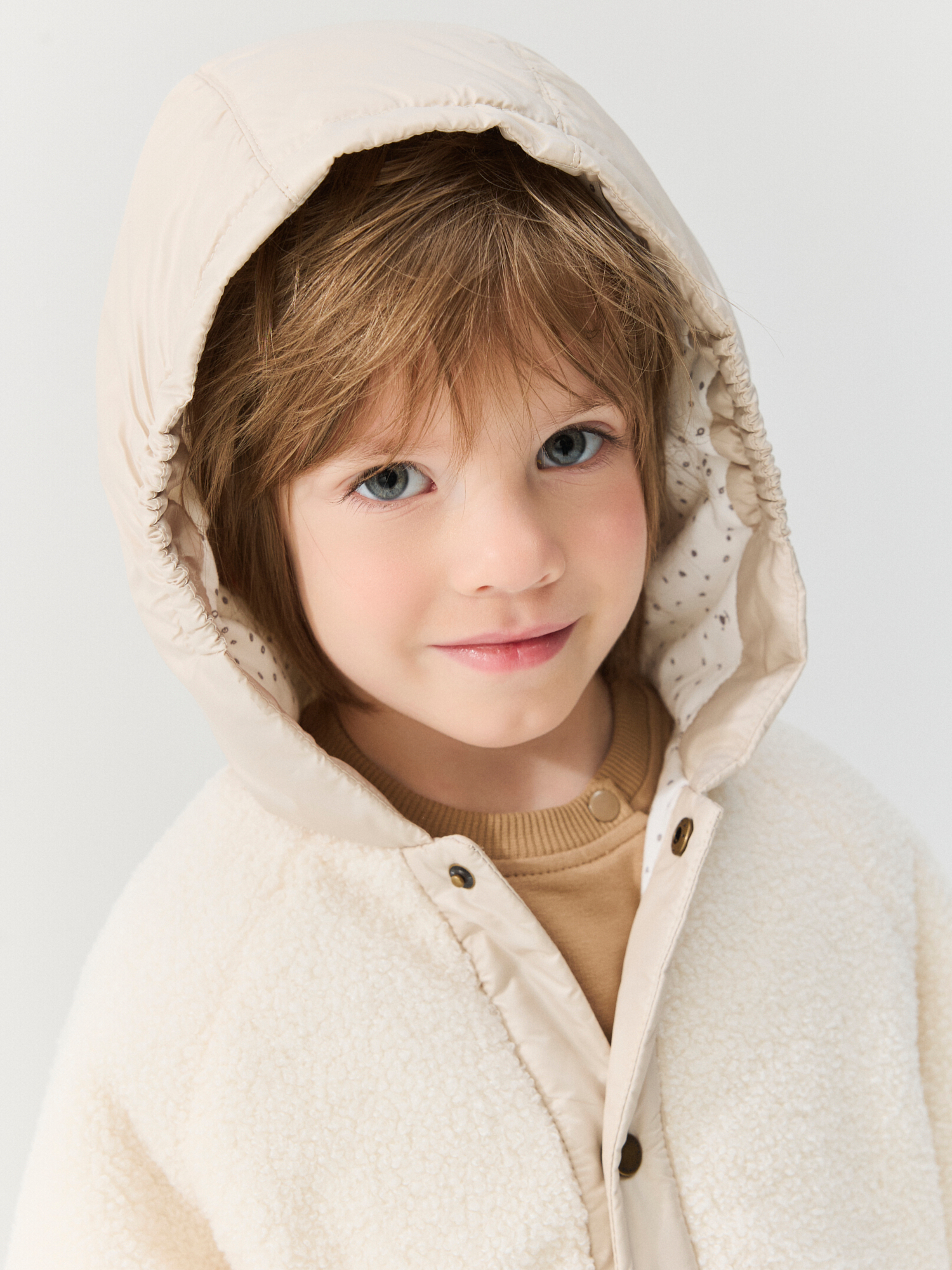 Капюшон из курточной ткани на хлопковой подкладке.