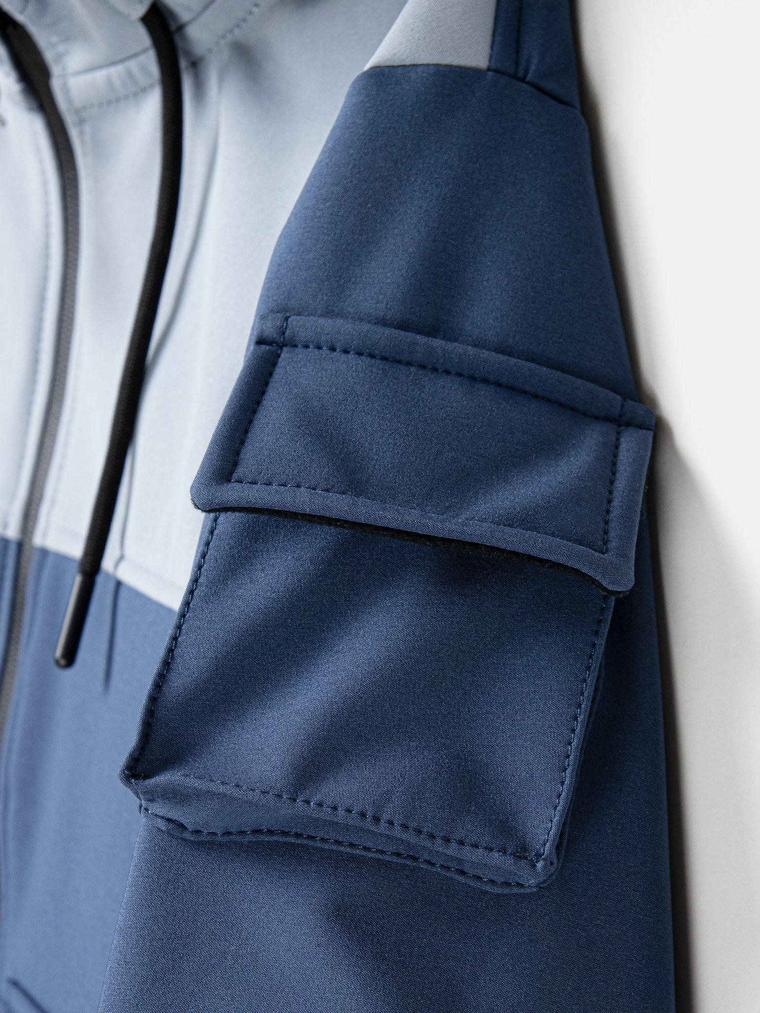 Мембранная ткань софтшелл с показателями 3000/3000 обеспечивает надежную защиту от влаги и продувания, позволяя детям активно проводить время на улице.