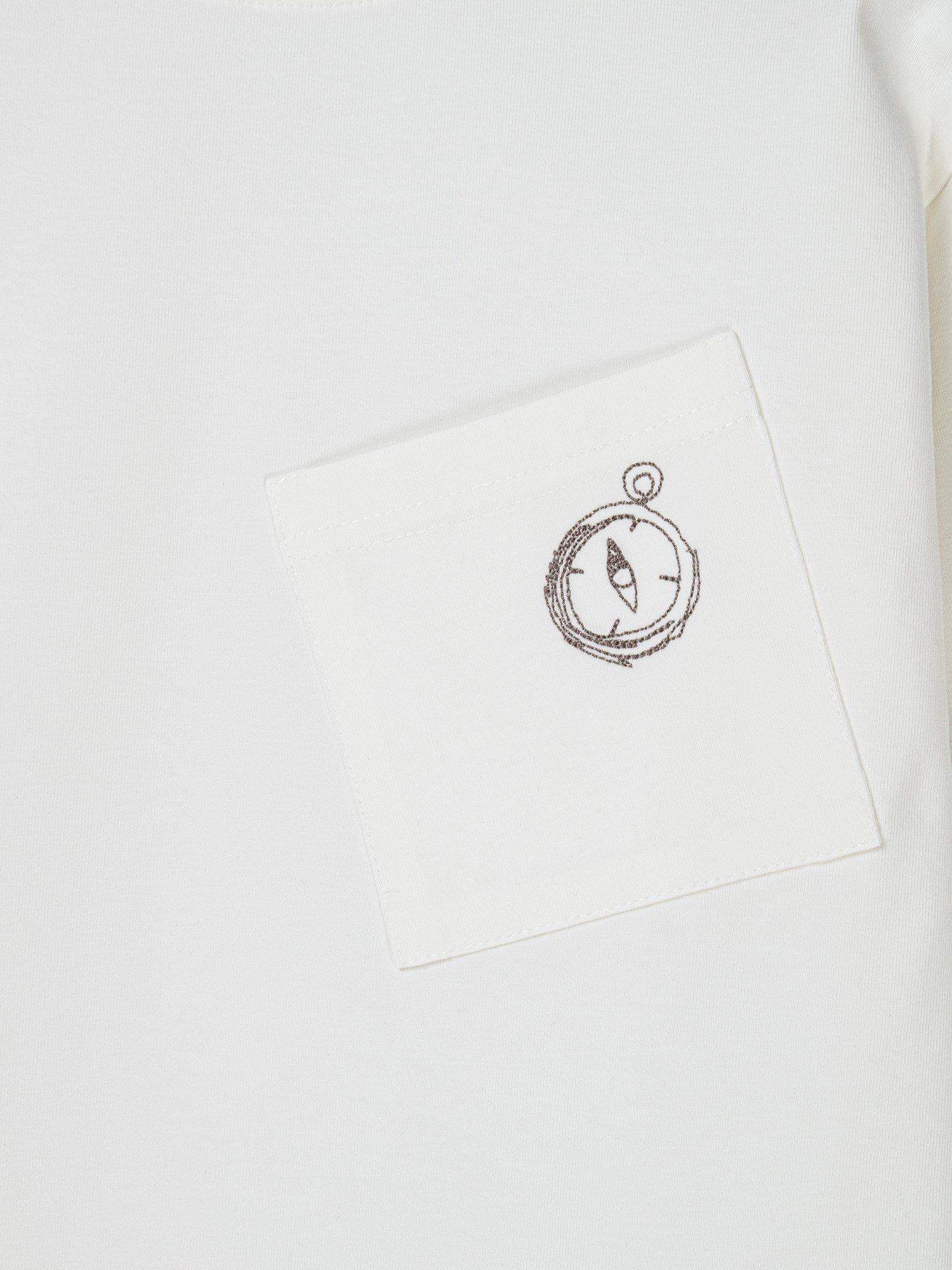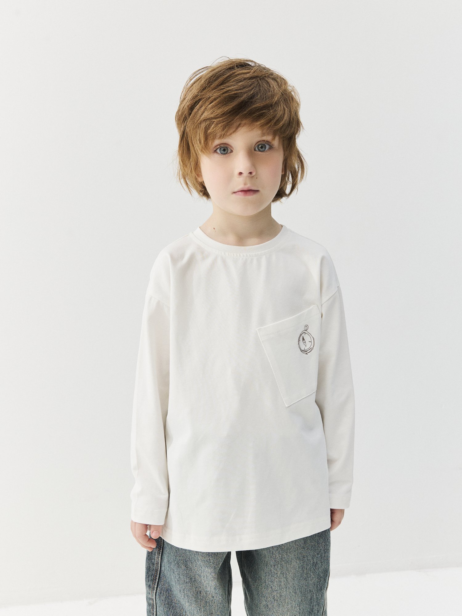 Этот лонгслив точно привлечет внимание и понравится юным первооткрывателям, ведь у него непрямой карман с вышивкой-компасом!