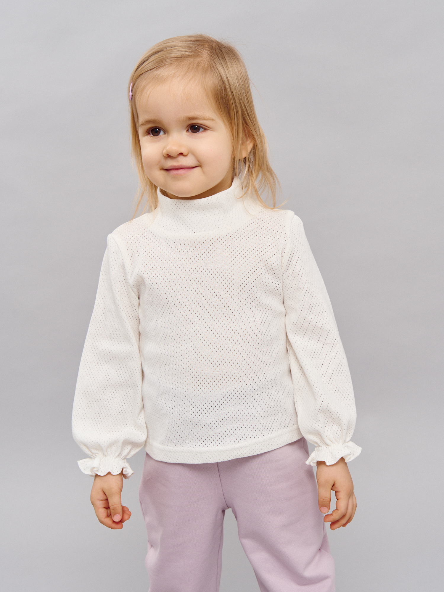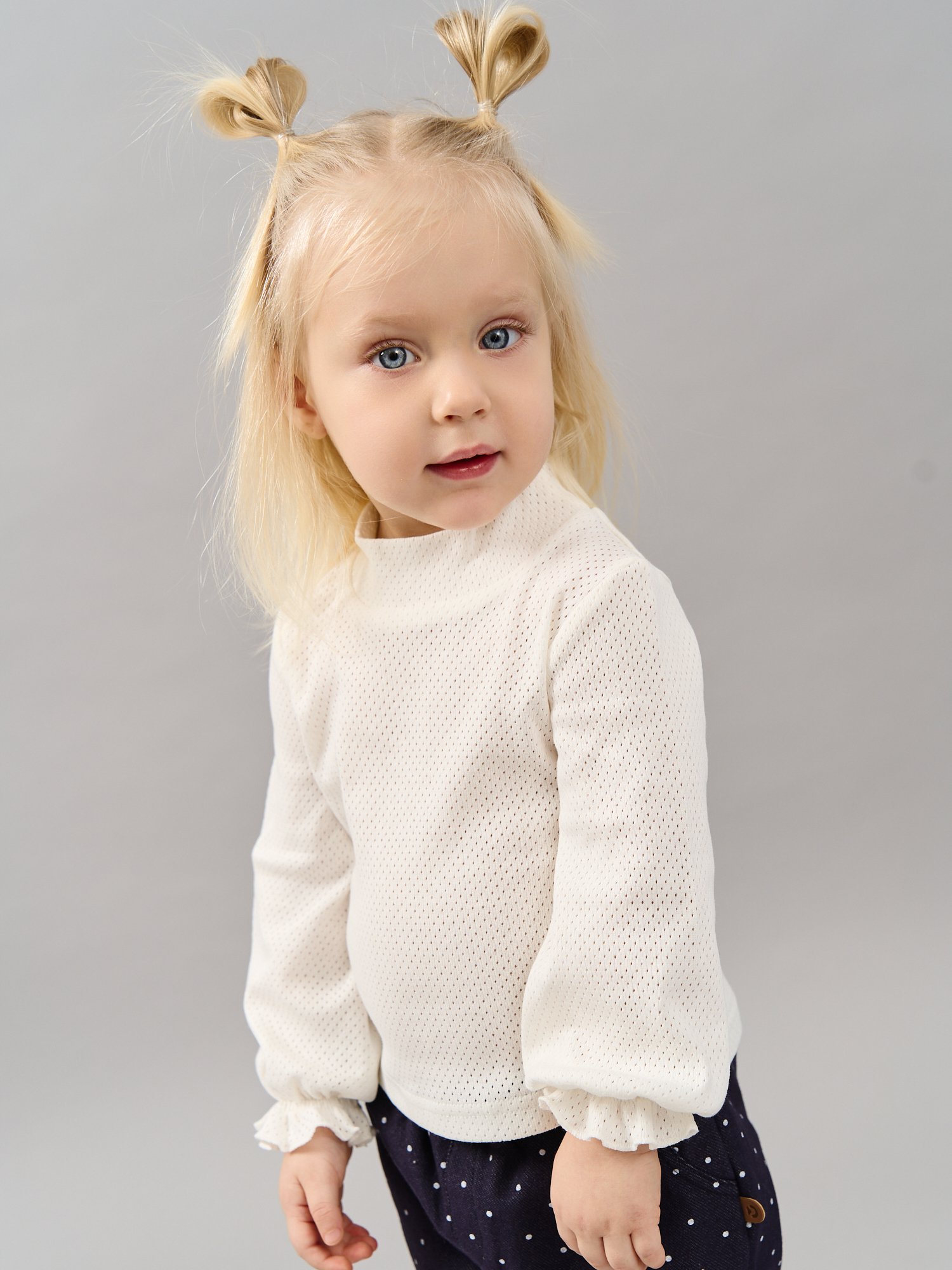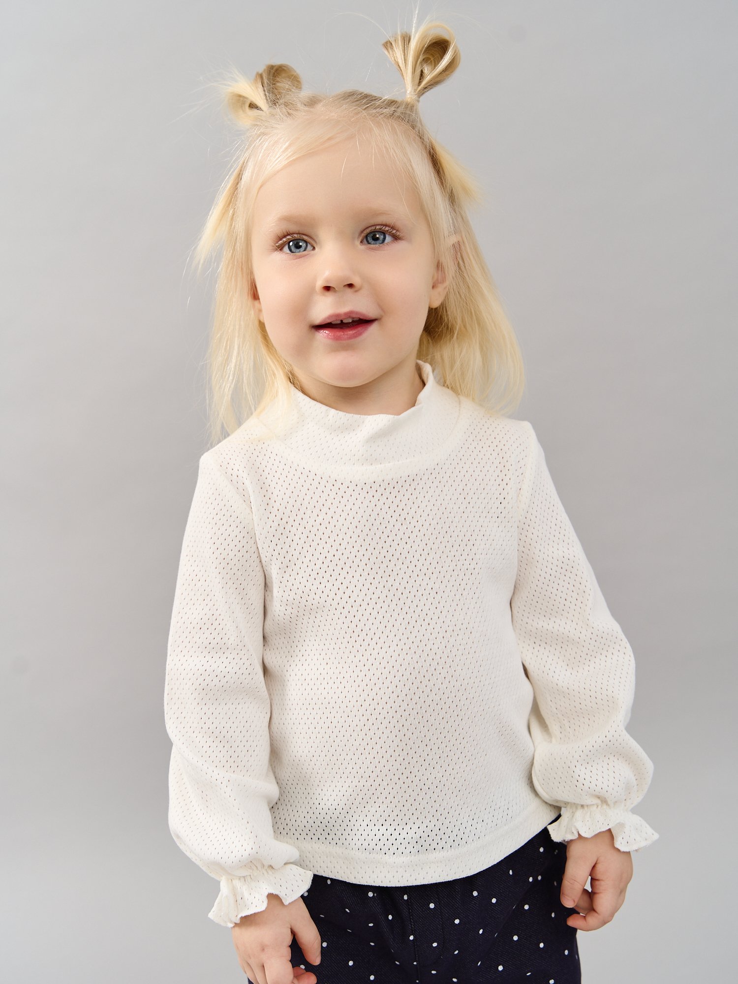 Нежный лонгслив с волнистым краем и кудрявыми рукавами — для создания изящных образов.