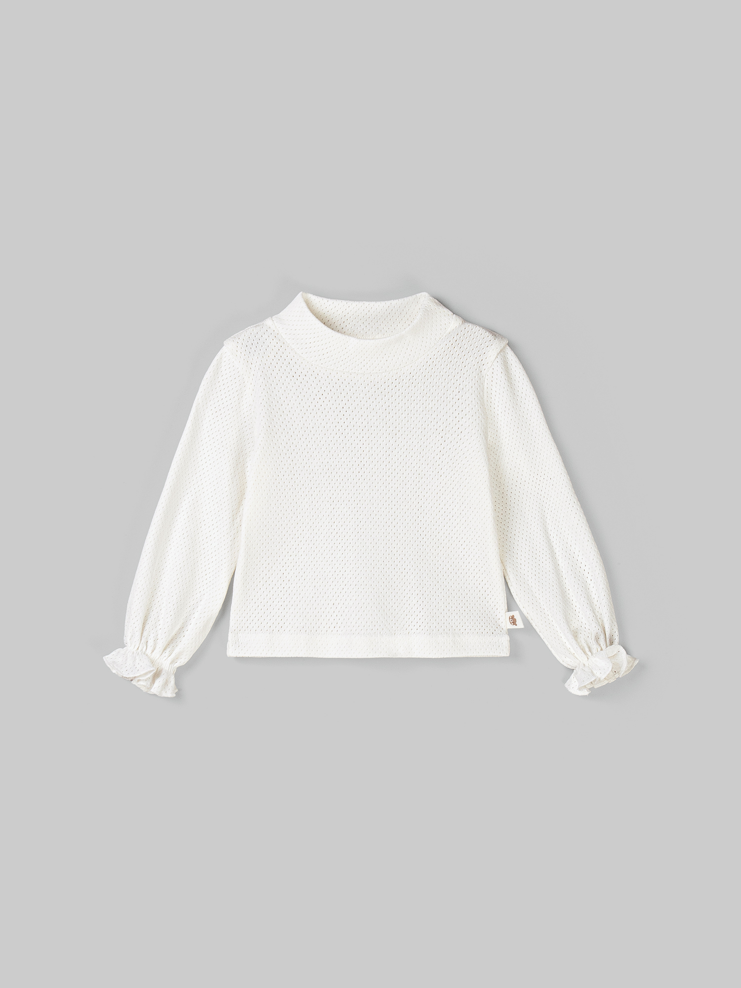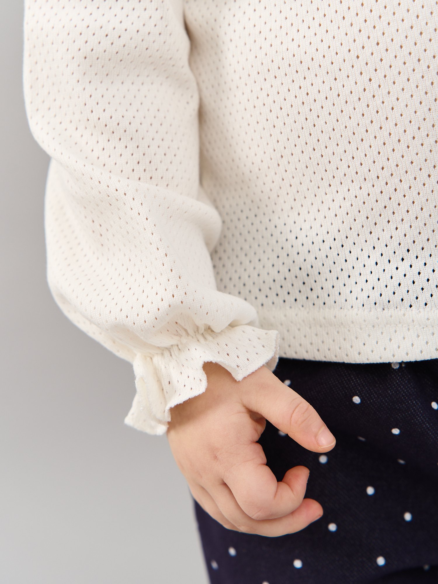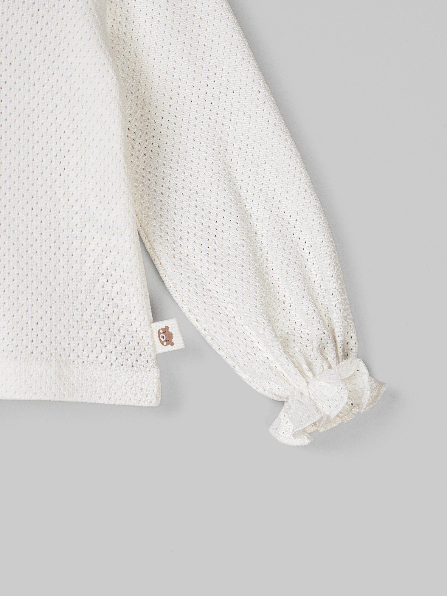 Нежный лонгслив с волнистым краем и кудрявыми рукавами — для создания изящных образов.