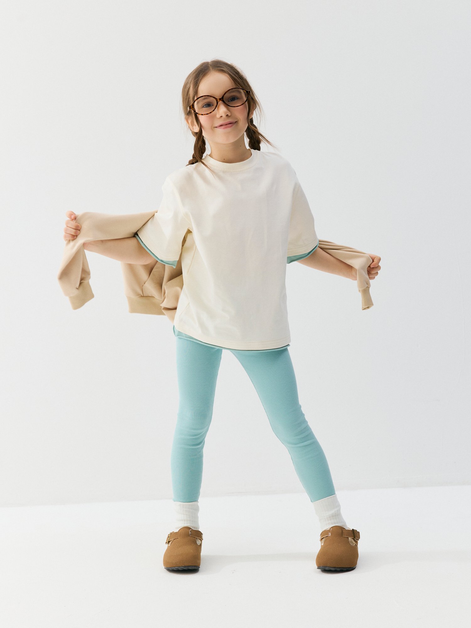 Пояс с резинкой нежно облегает животик и надежно фиксирует легинсы на талии.