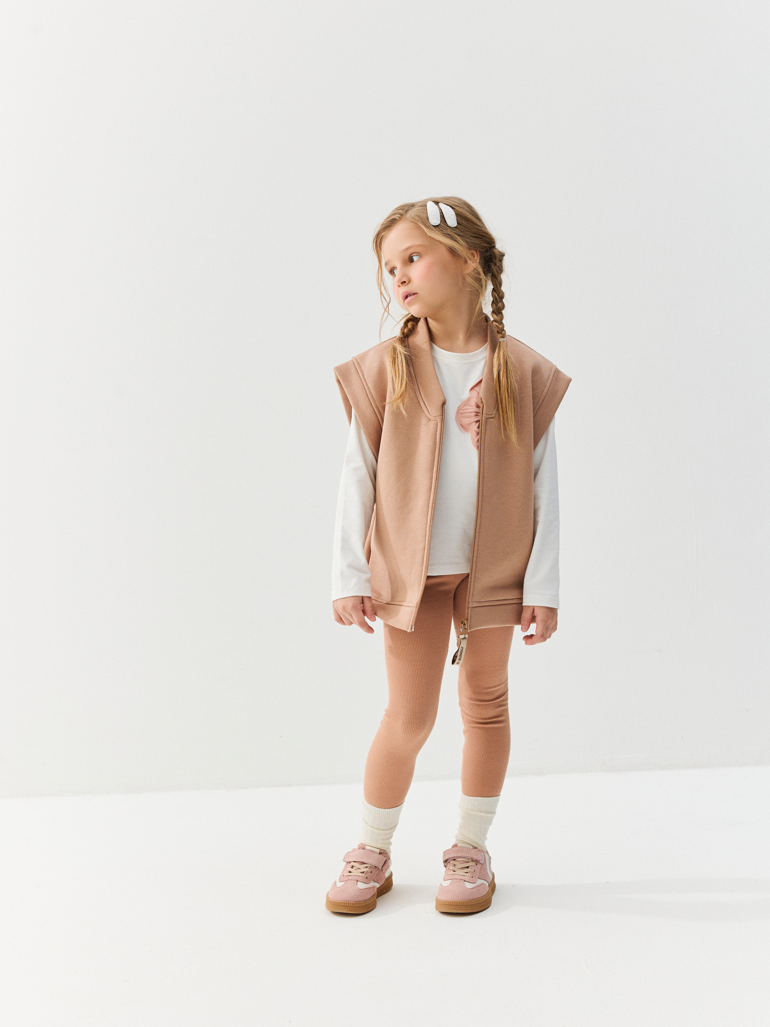Пояс с резинкой нежно облегает животик и надежно фиксирует легинсы на талии.