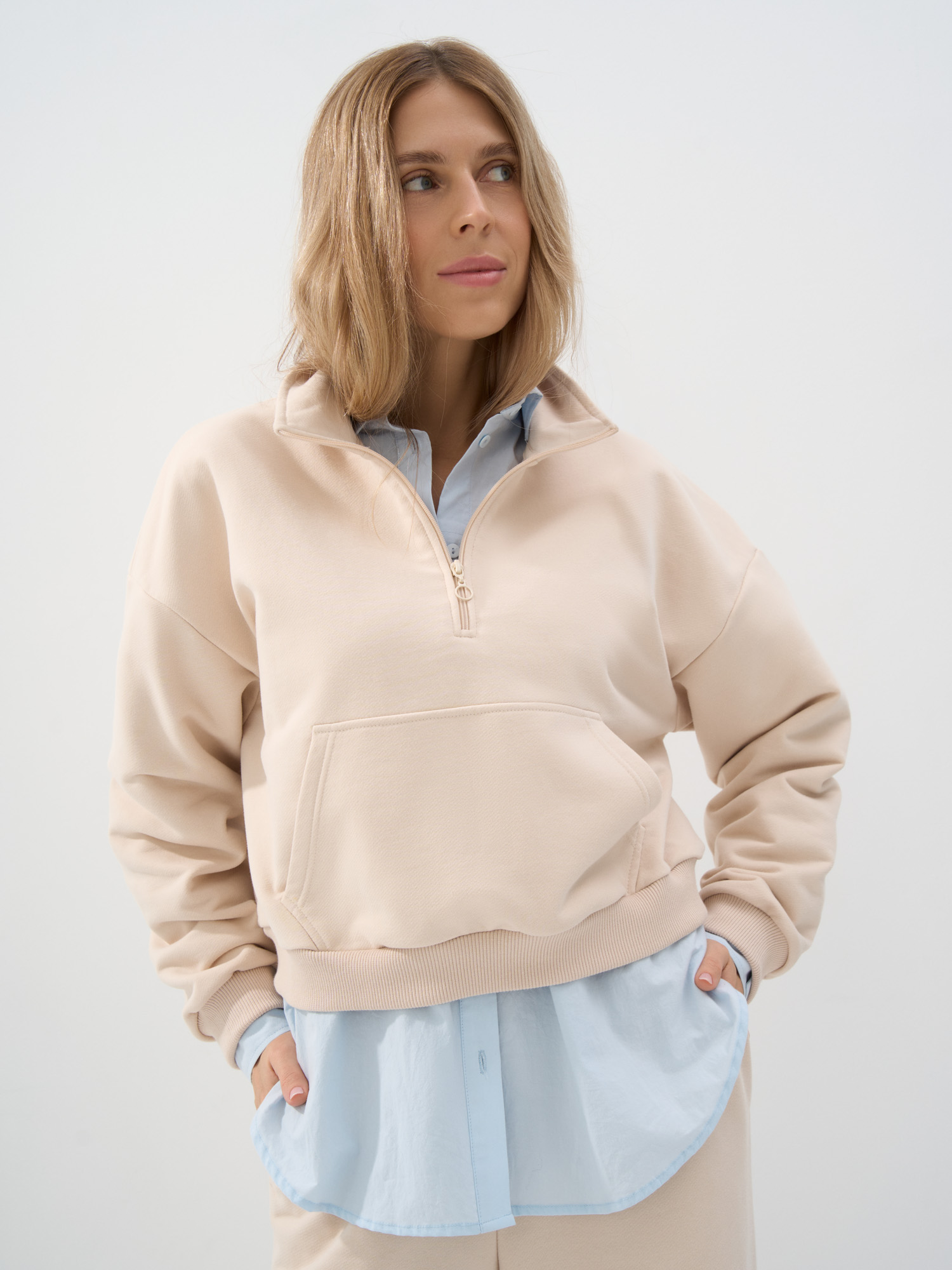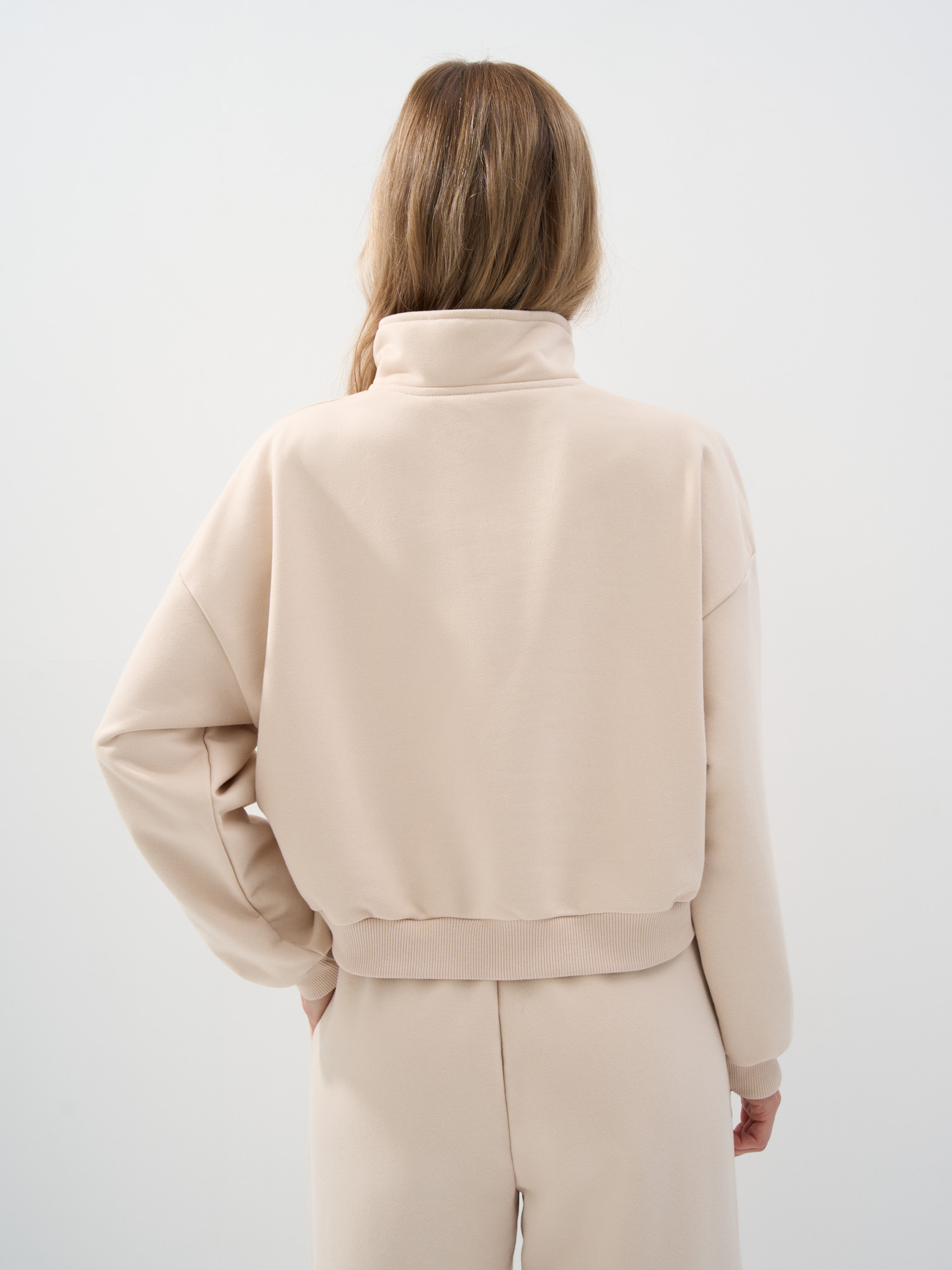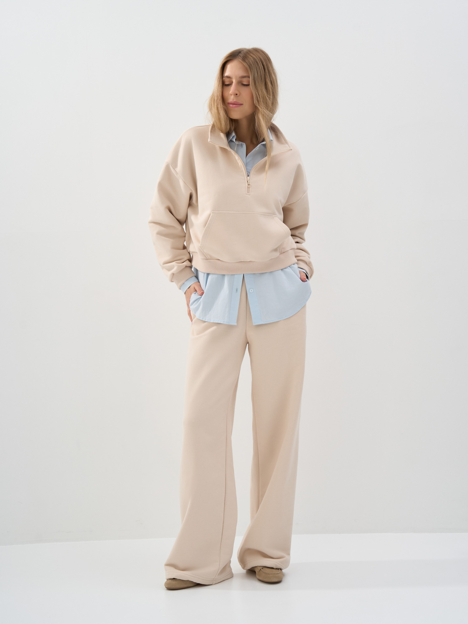 Плотный футер трехнитка с велюровым эффектом — мягкая, тактильно приятная фактура ткани на основе 90% хлопка отлично держит форму, пропускает воздух и устойчива к появлению катышков.