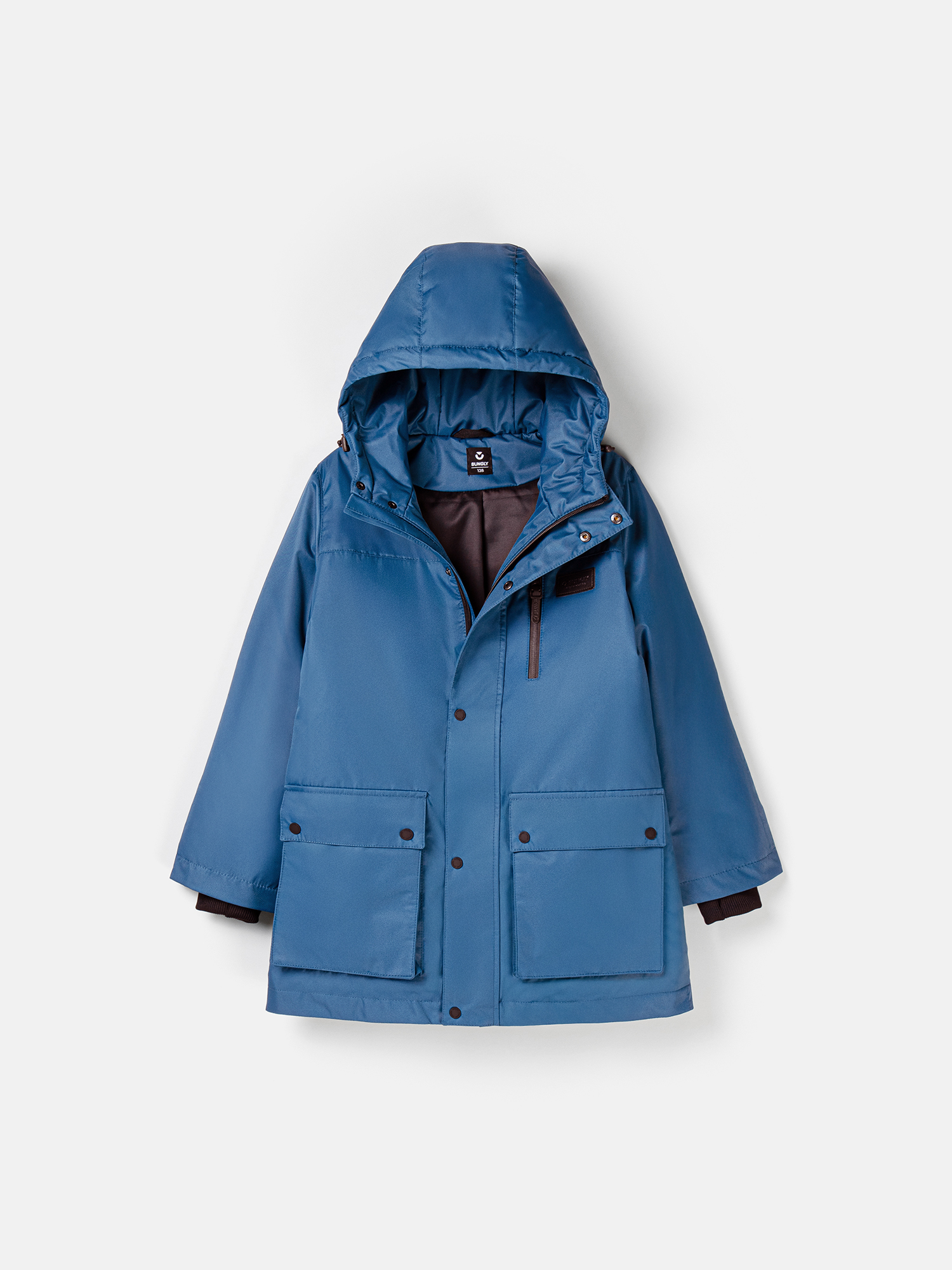 Вместительные карманы-портфели с клапанами на кнопках и один прорезной карман на молнии в верхней части парки.