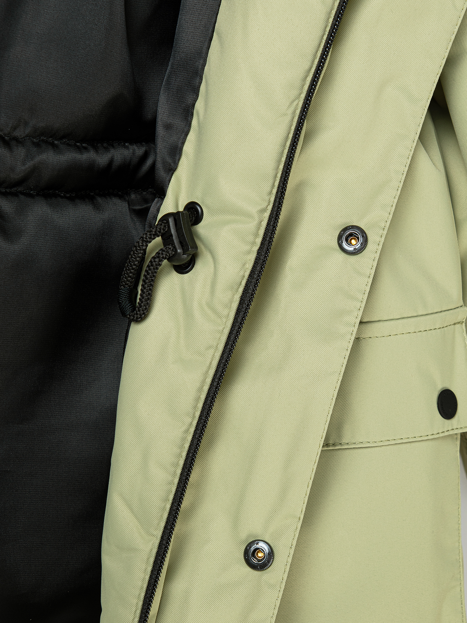 Ветрозащитная планка на кнопках по всей длине молнии.