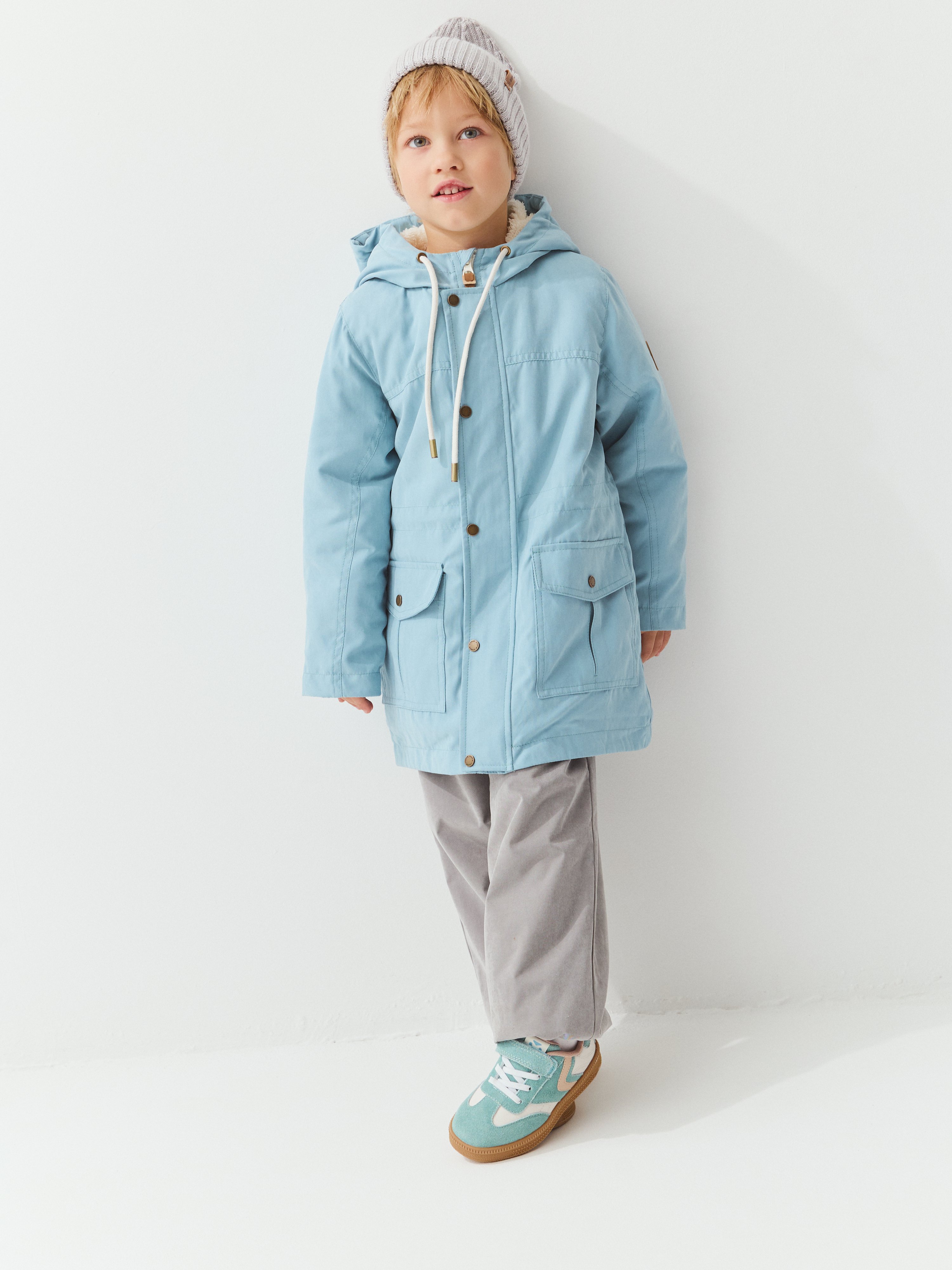 Демисезонная парка прямого силуэта из мембранной ткани с показателями 3000/3000 для защиты от влаги и ветра.