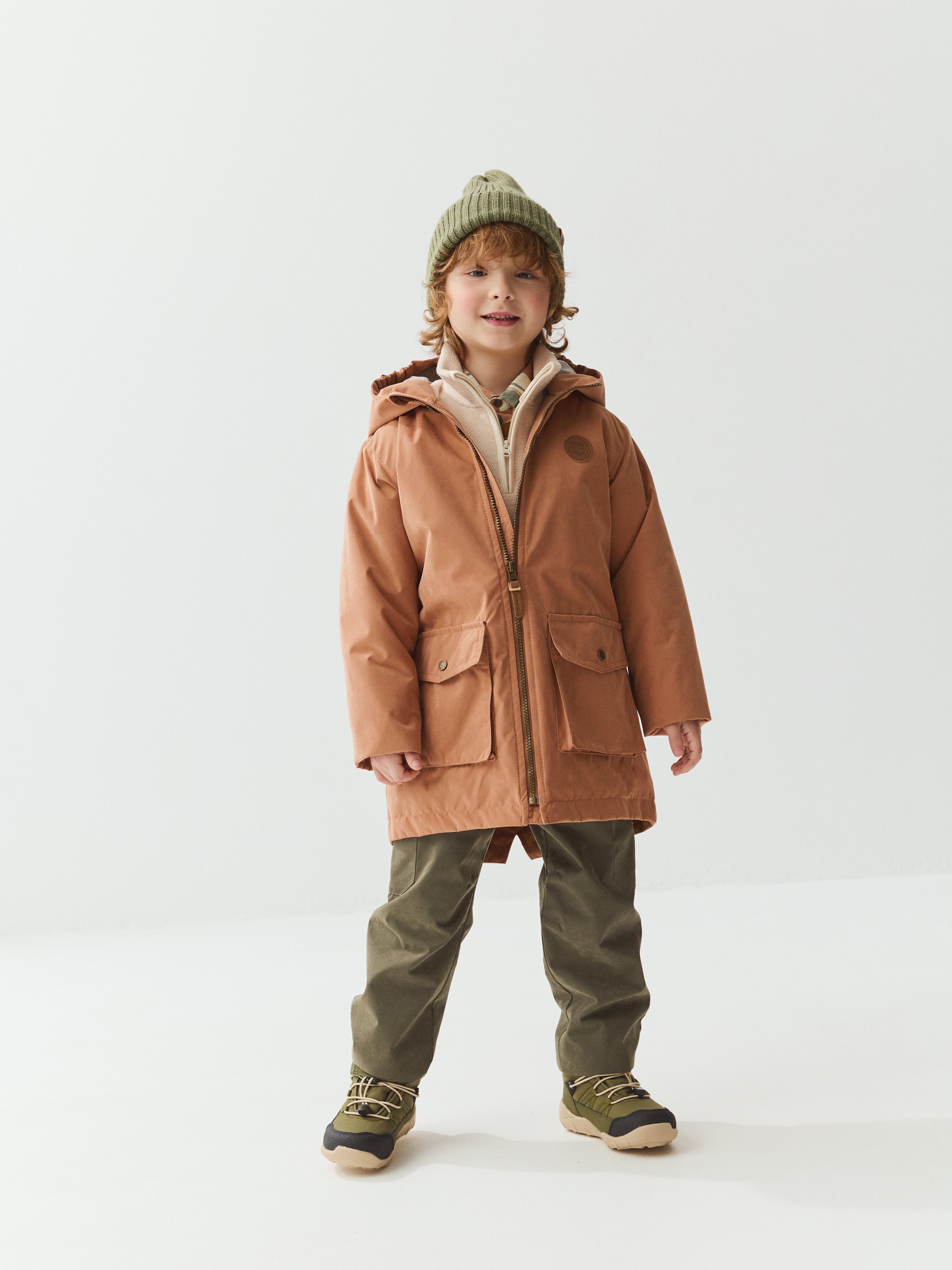 Демисезонная парка прямого силуэта из мембранной ткани с показателями 3000/3000 для защиты от влаги и ветра.