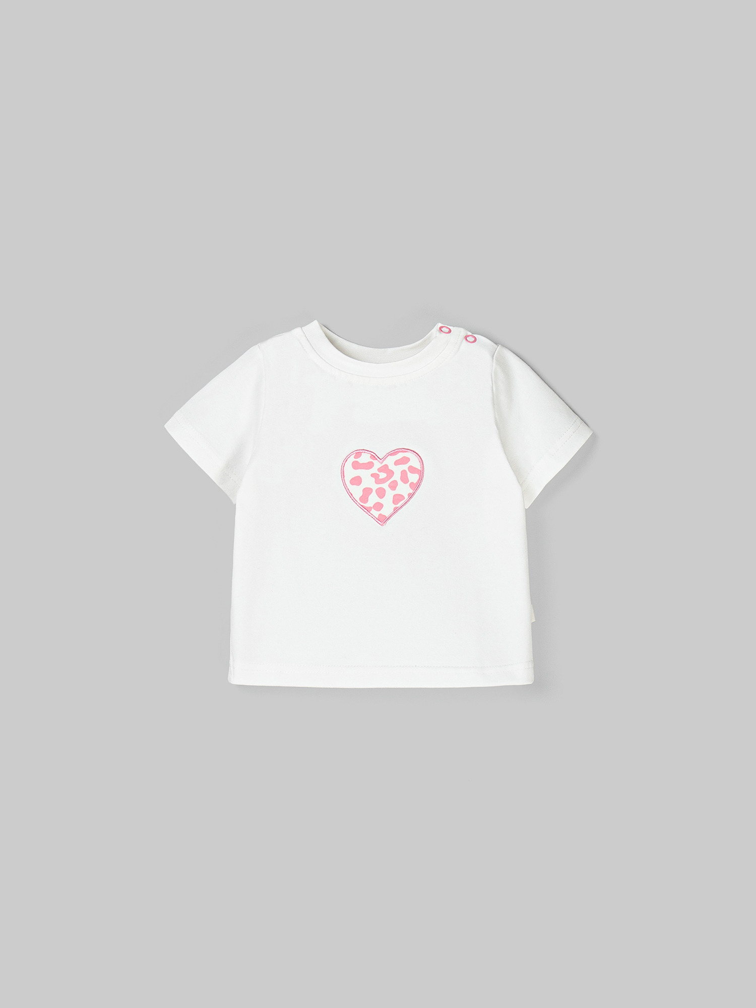 Футболка умеренного объема с акцентом-аппликацией в виде сердечка понравится романтичным особам.