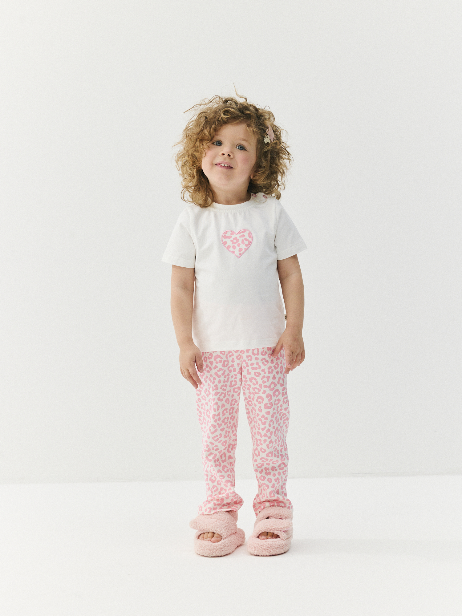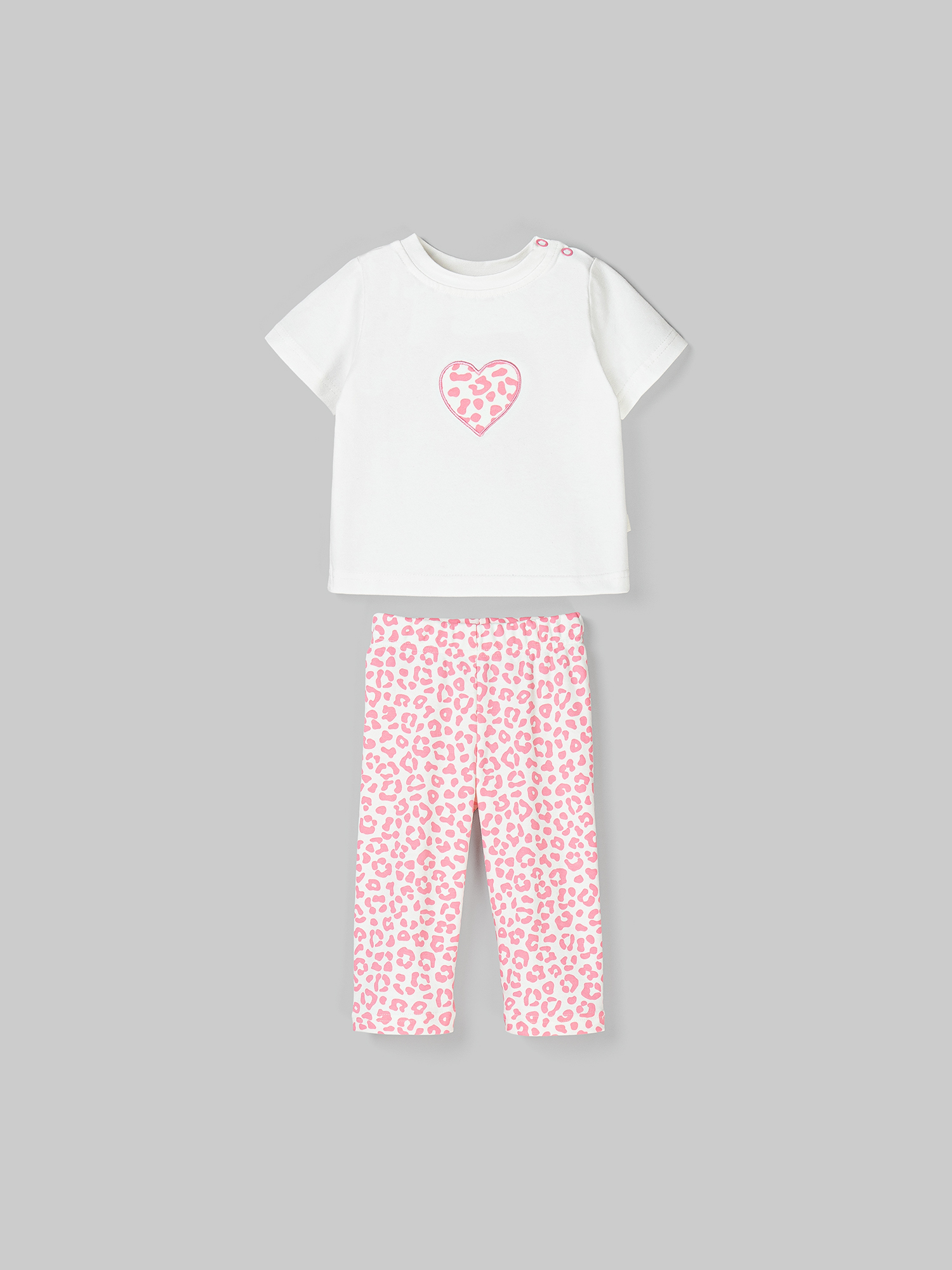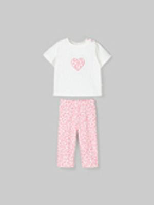 Нежная хлопковая пижама для малышей состоит из футболки и брючек.
