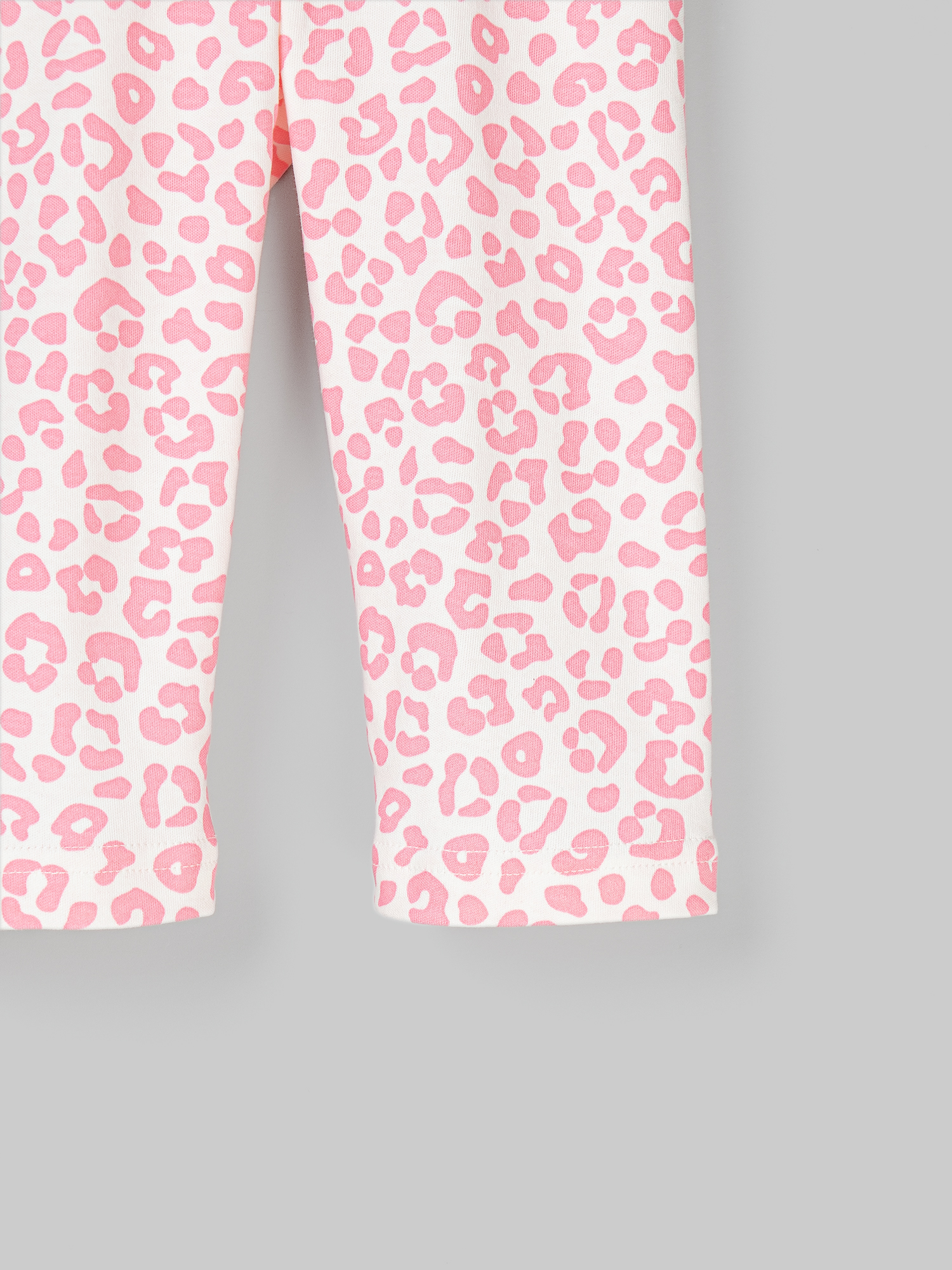 Пятнистые брючки красиво дополняют образ.