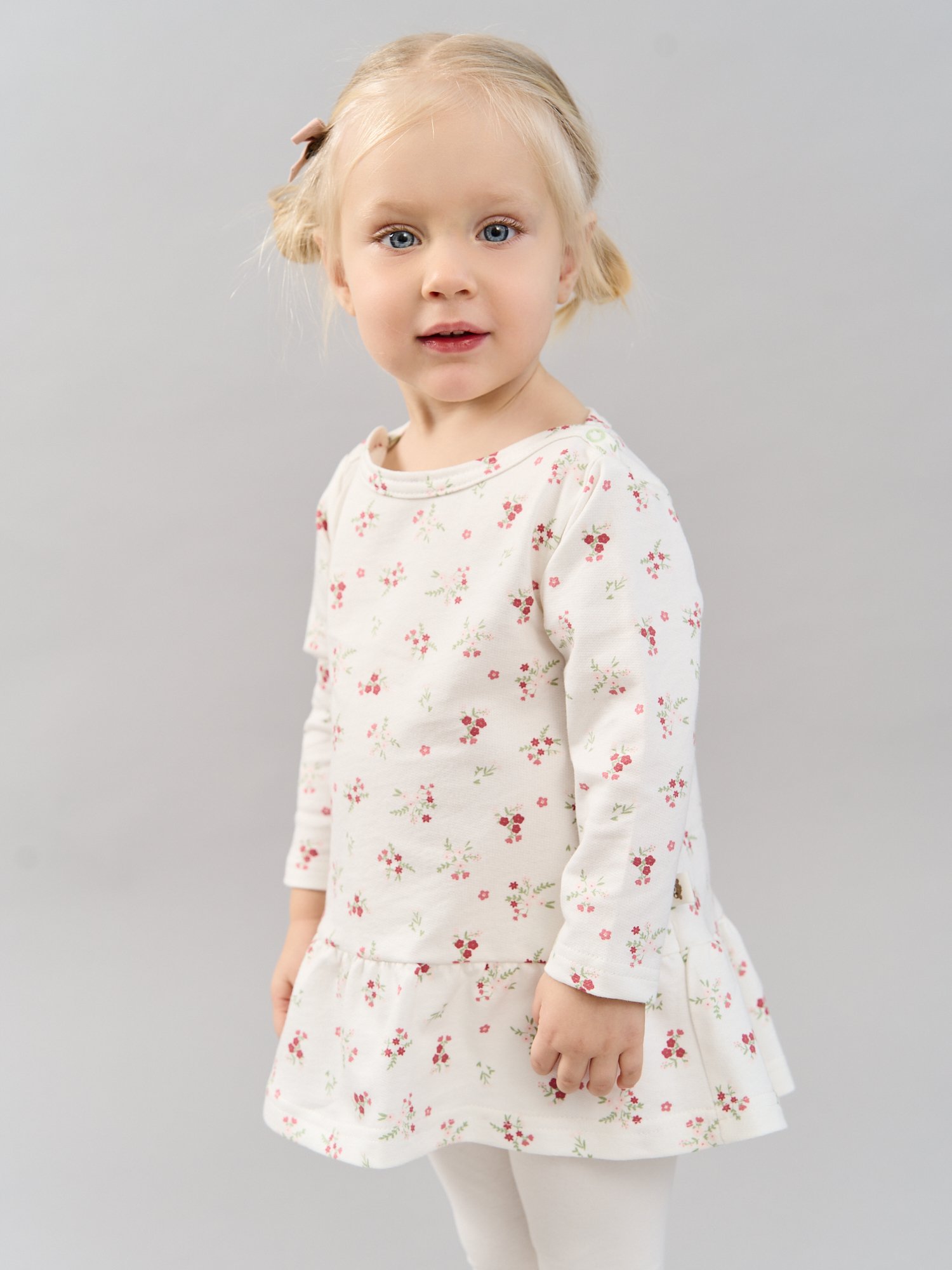 Изящный воротник-лодочка с застежкой на кнопочки облегчает переодевание и особенно актуальна для чувствительных малышей.