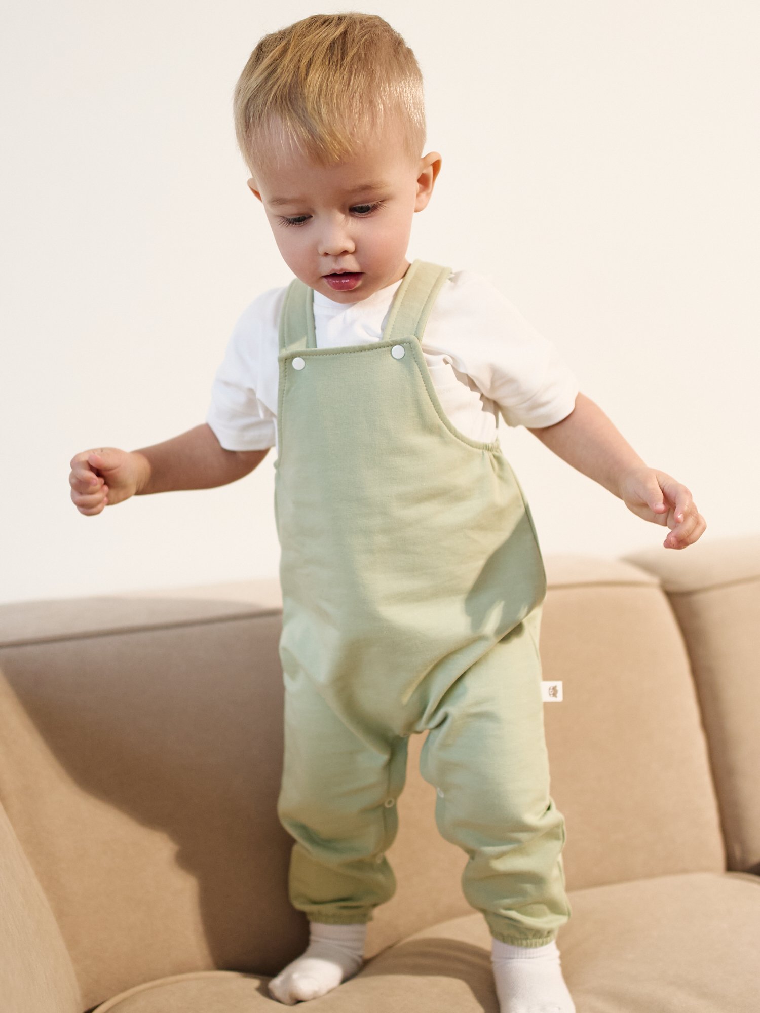 Комбинезон легко надеть поверх бодика, футболки или тонкой кофты — подходит для прогулок на свежем воздухе, поездок в гости и уютных вечеров дома.