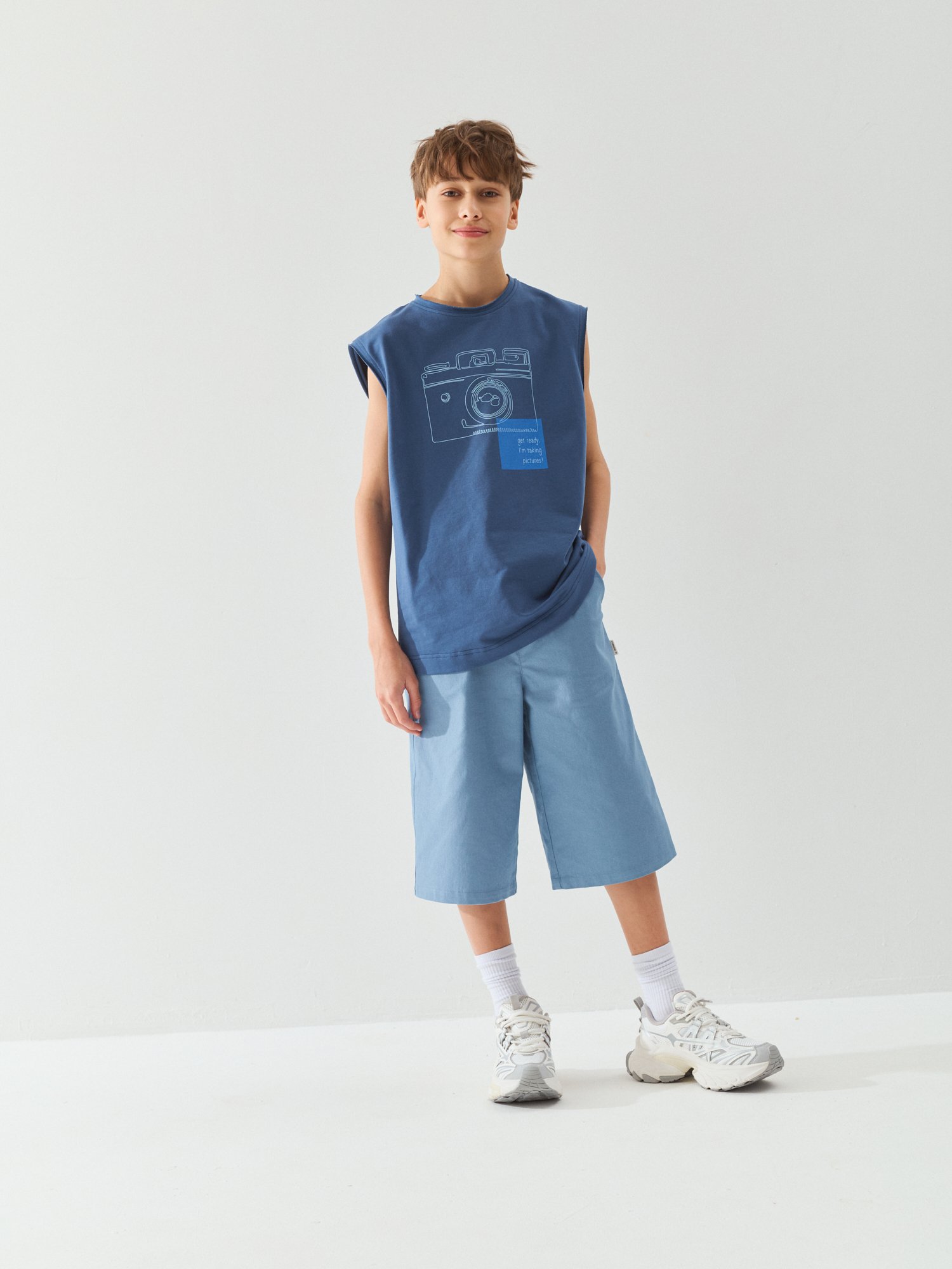 Длинные шорты-бермуды созданы из легкой джинсовой ткани.