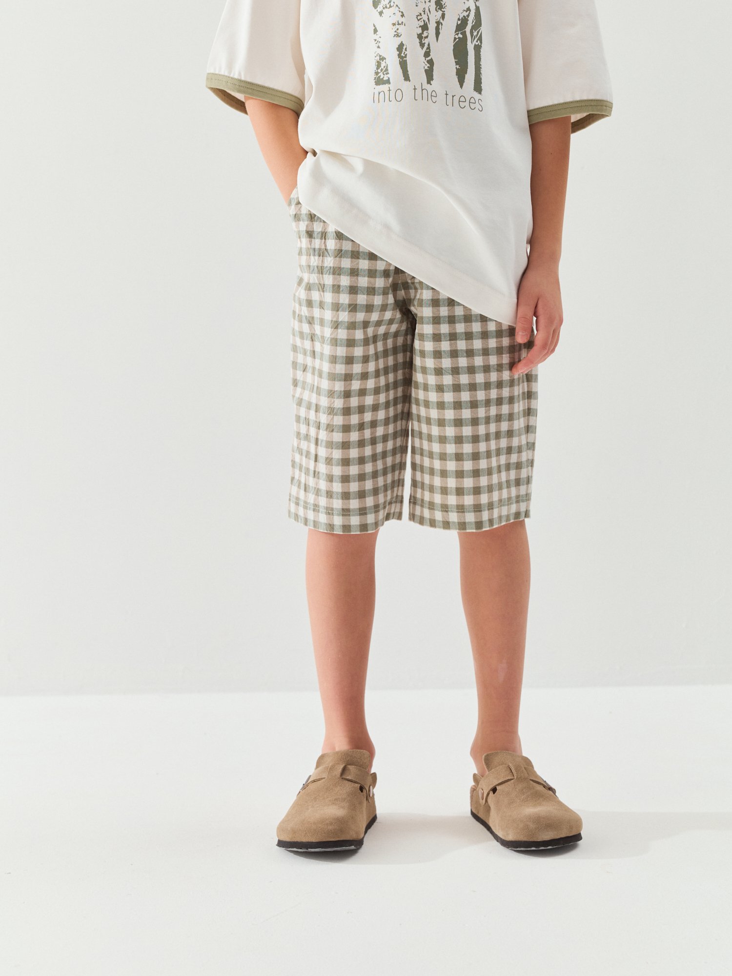 Мягкая резинка с завязками надежно фиксирует шорты на талии.