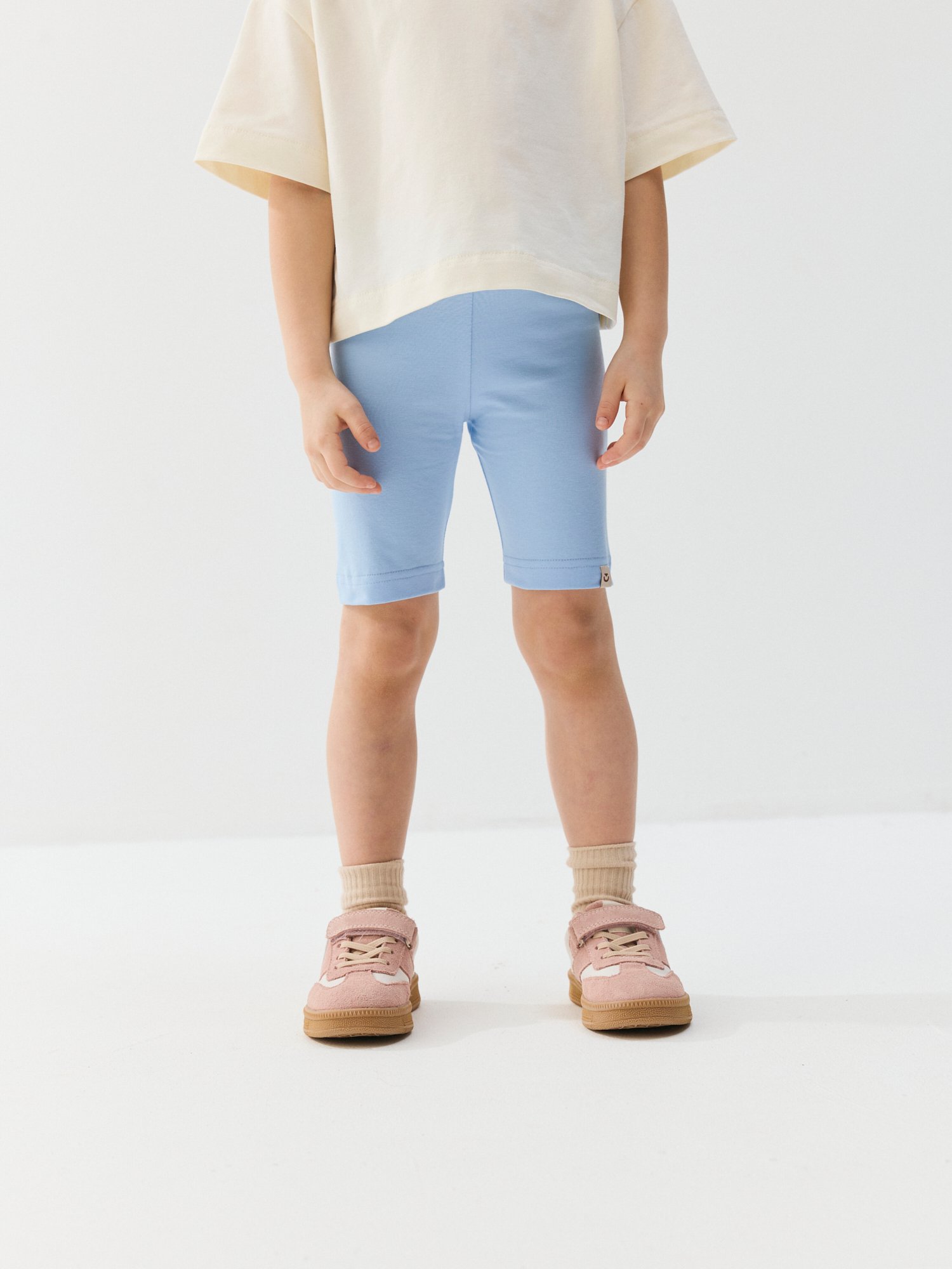 Резинка на поясе мягко облегает животик и надежно фиксирует велосипедки на талии.