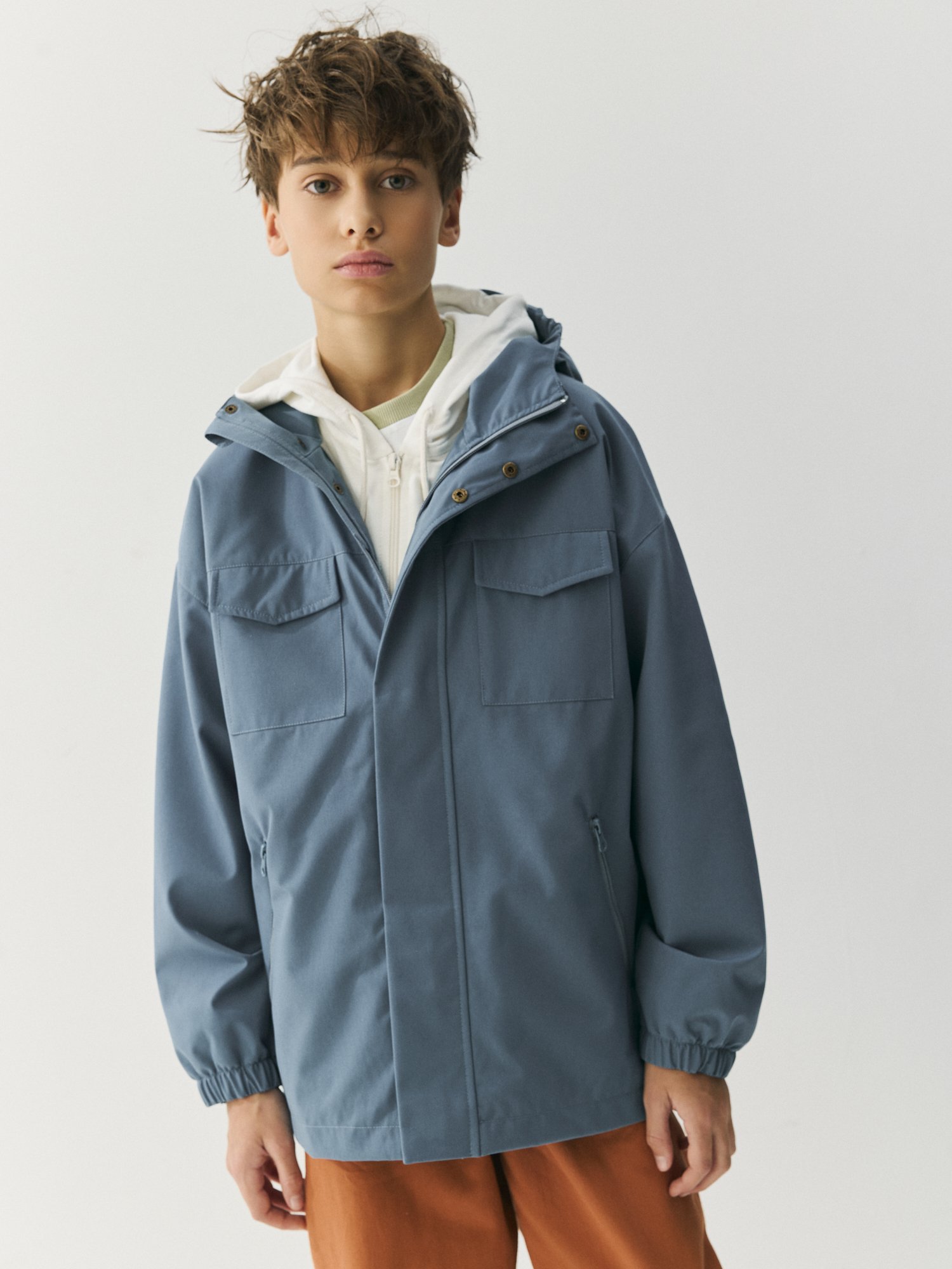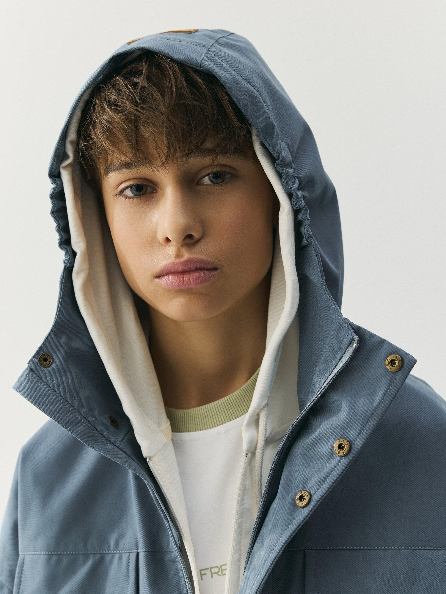Несъемный капюшон с утяжкой на резинку для идеальной посадки.