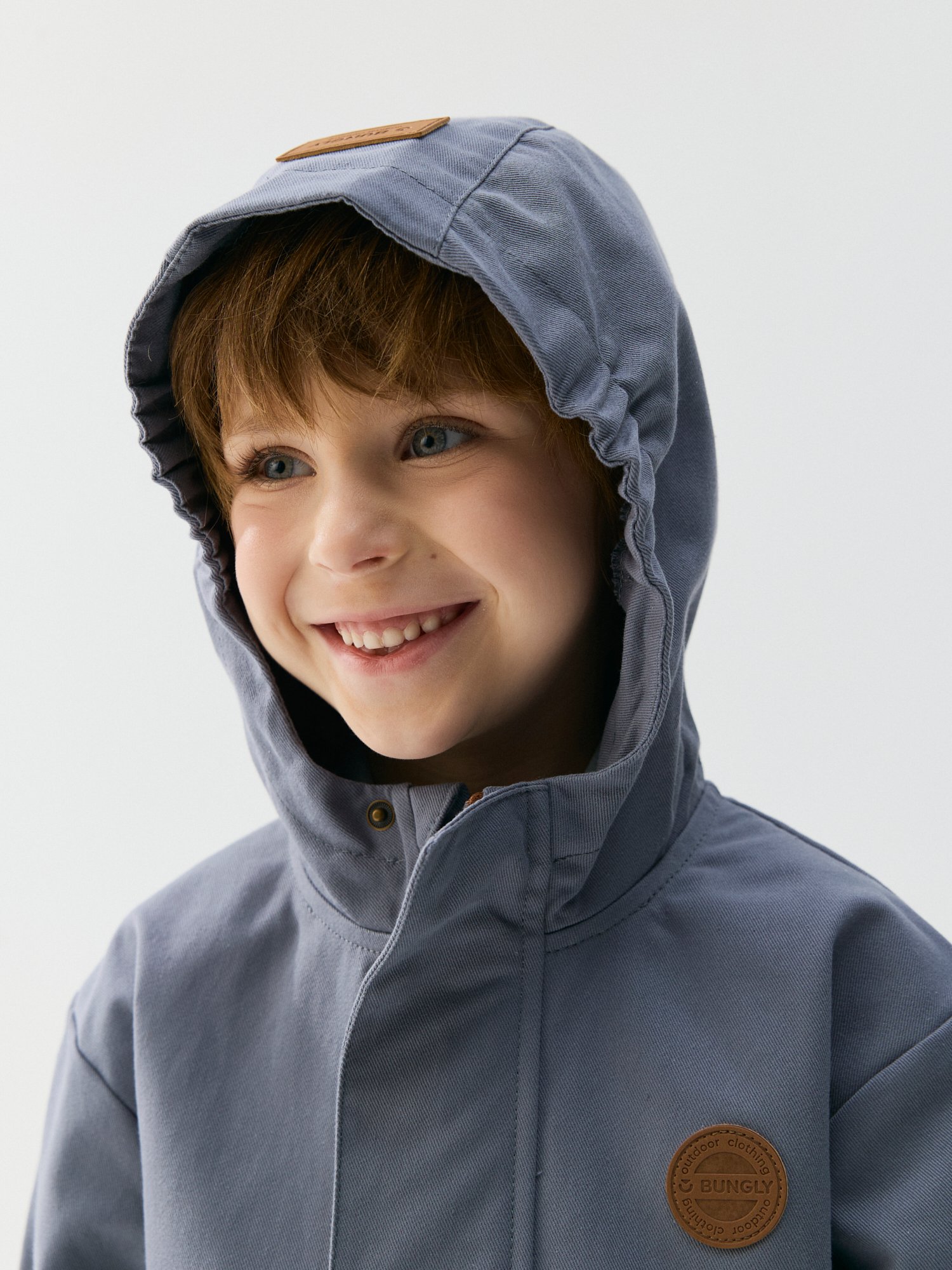 Глубокий капюшон с утяжкой на резинку по бокам.