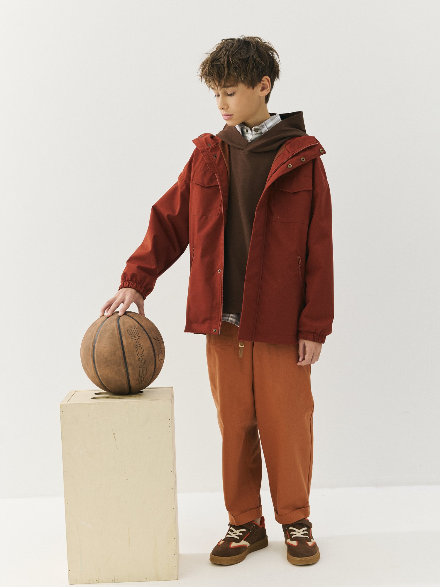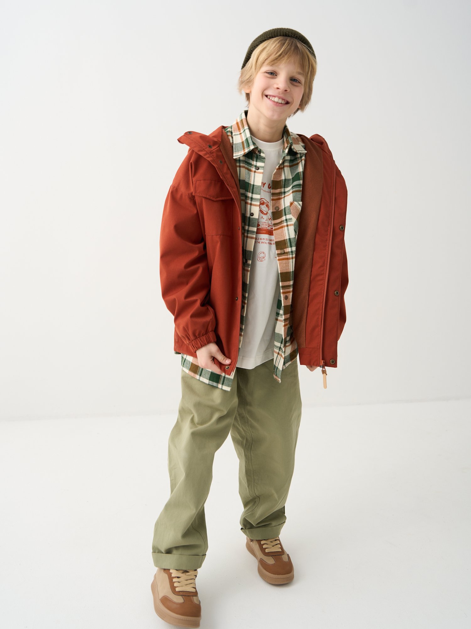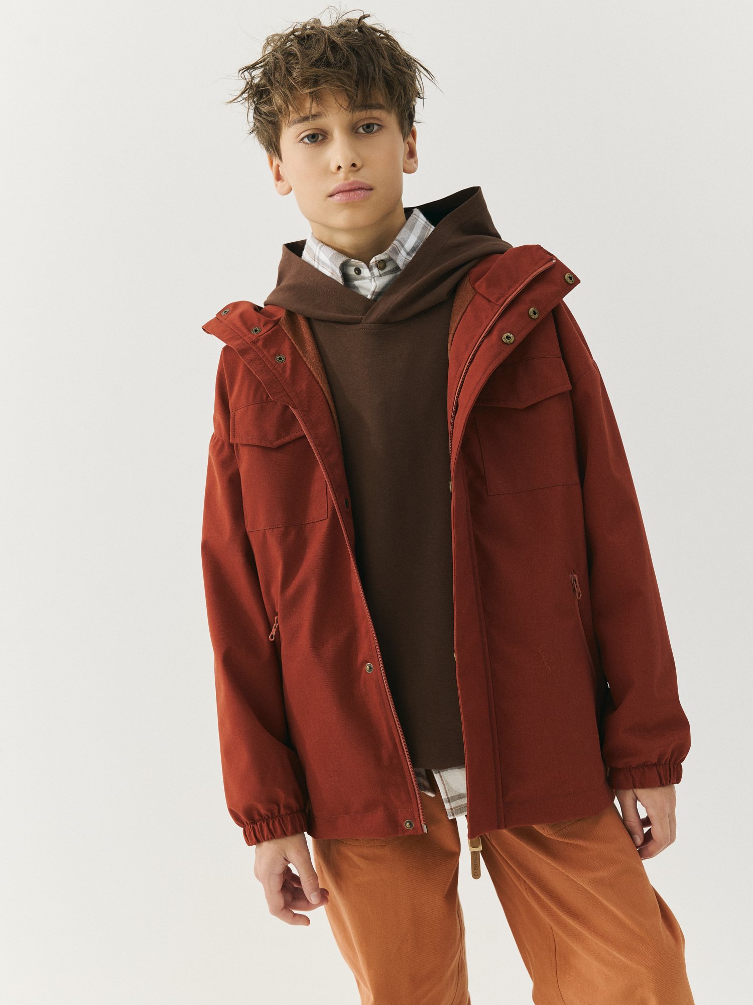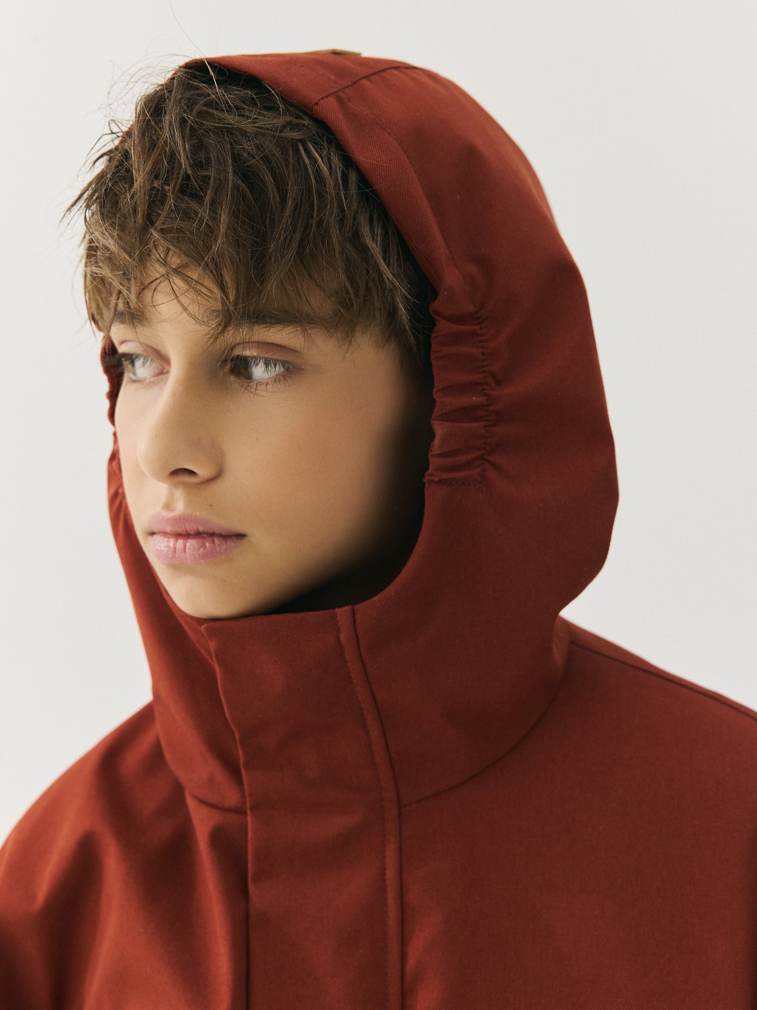 Несъемный капюшон с утяжкой на резинку для идеальной посадки.