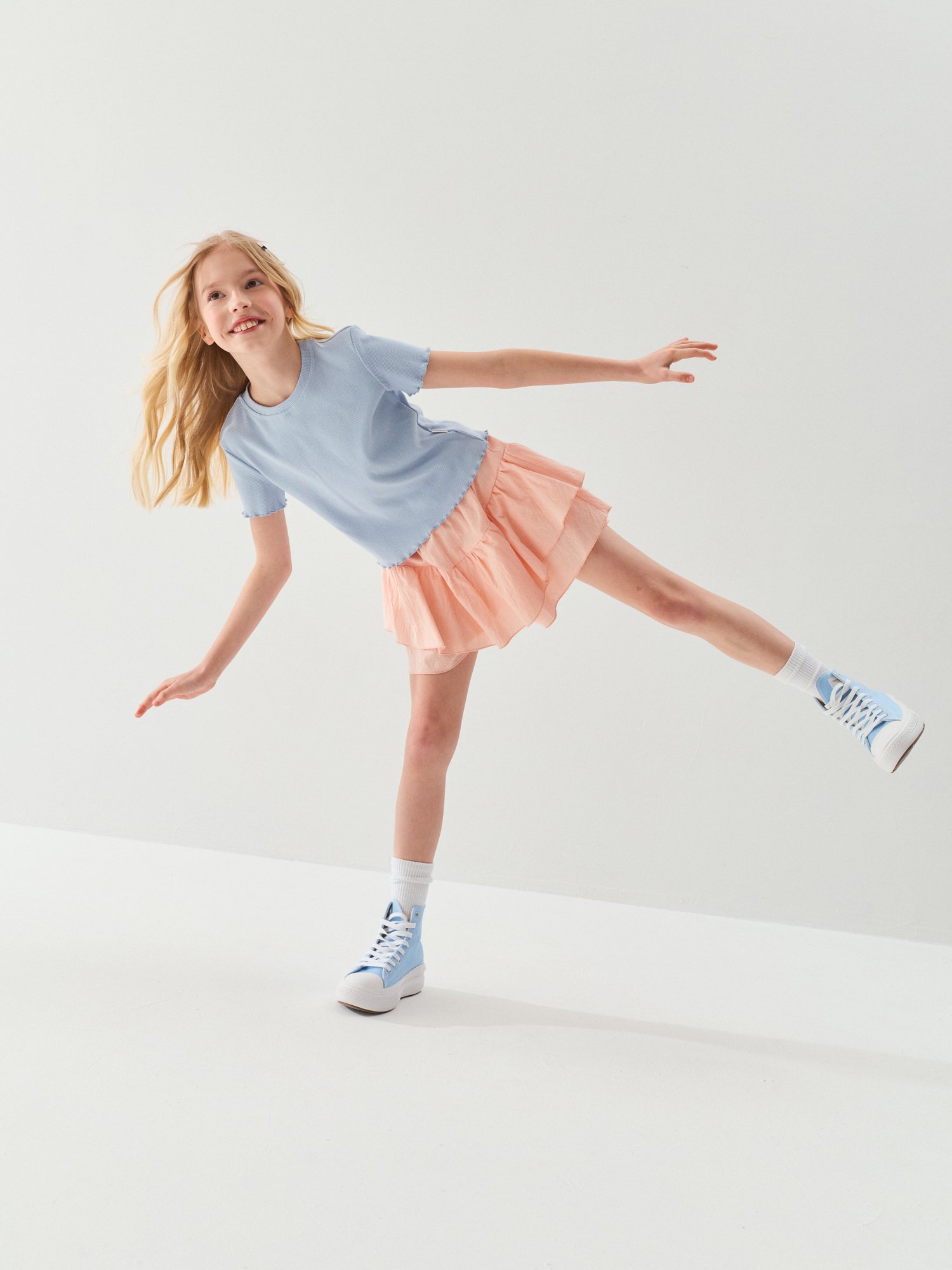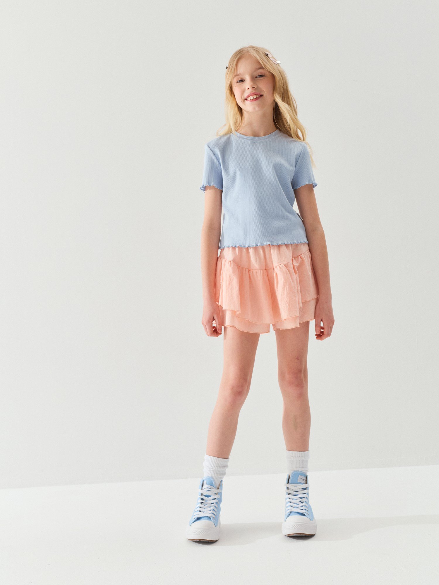Юбка-шорты с воланом выглядит красиво и не задирается.