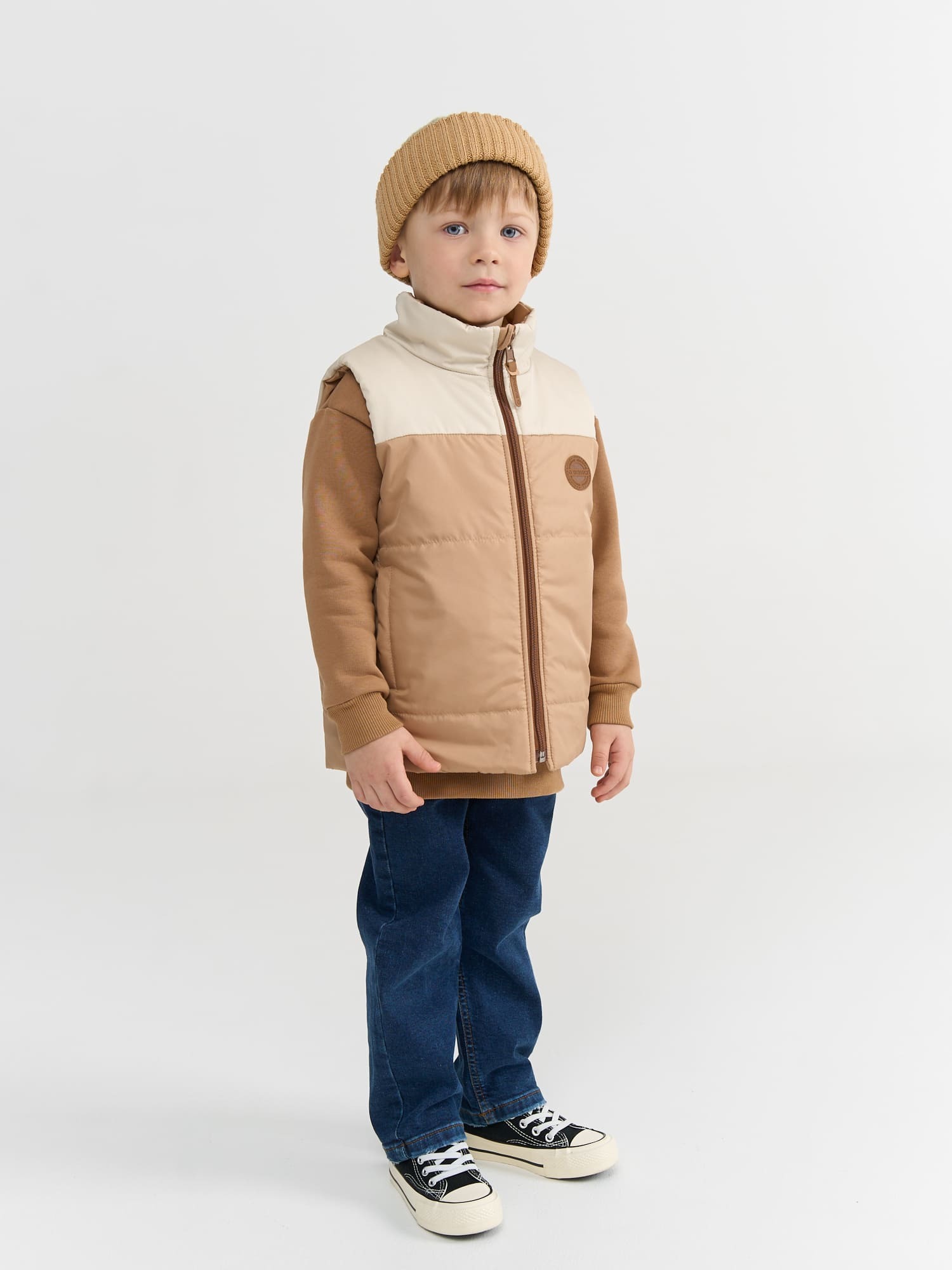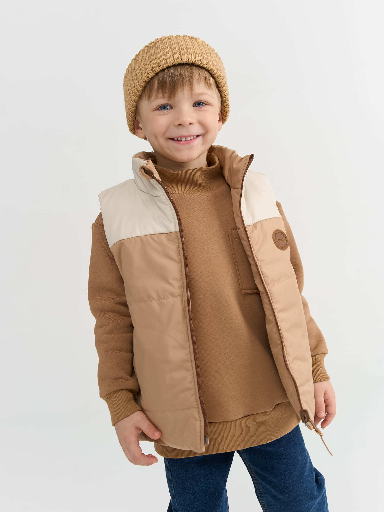 Двусторонний жилет колор-блок на молнии.