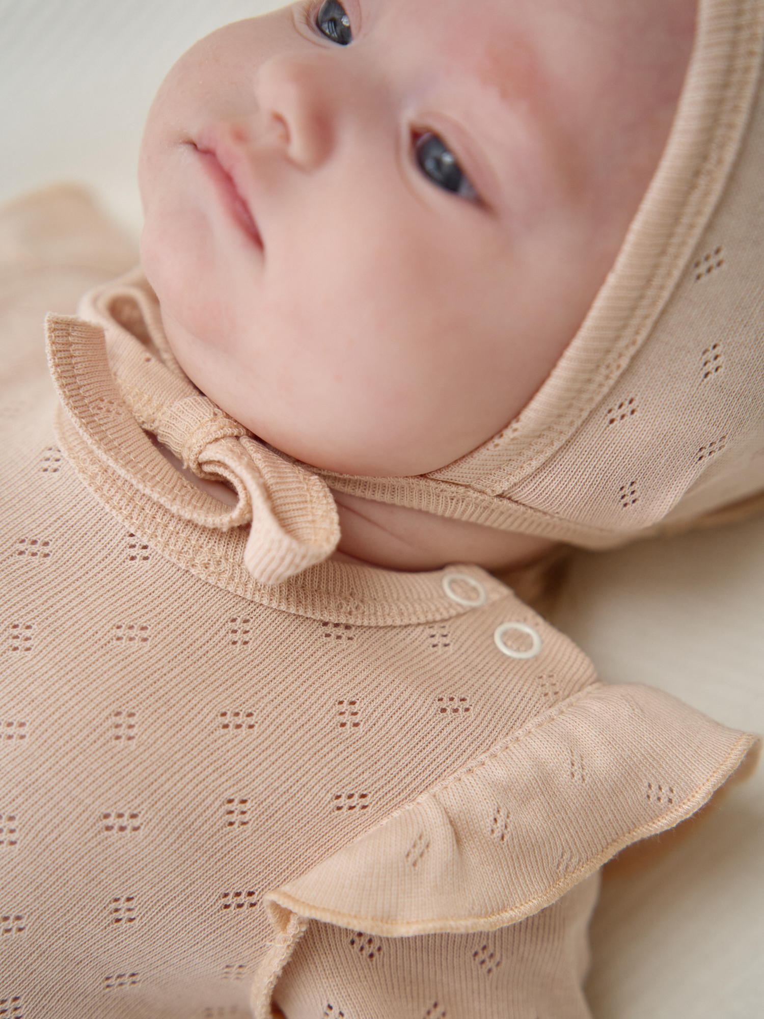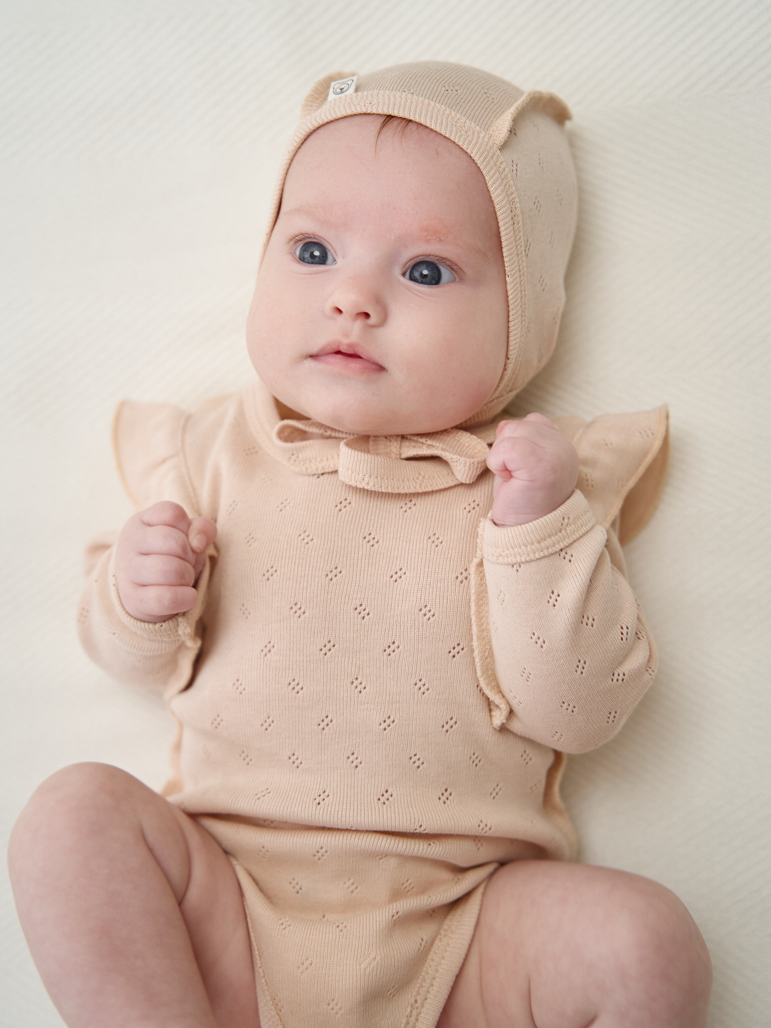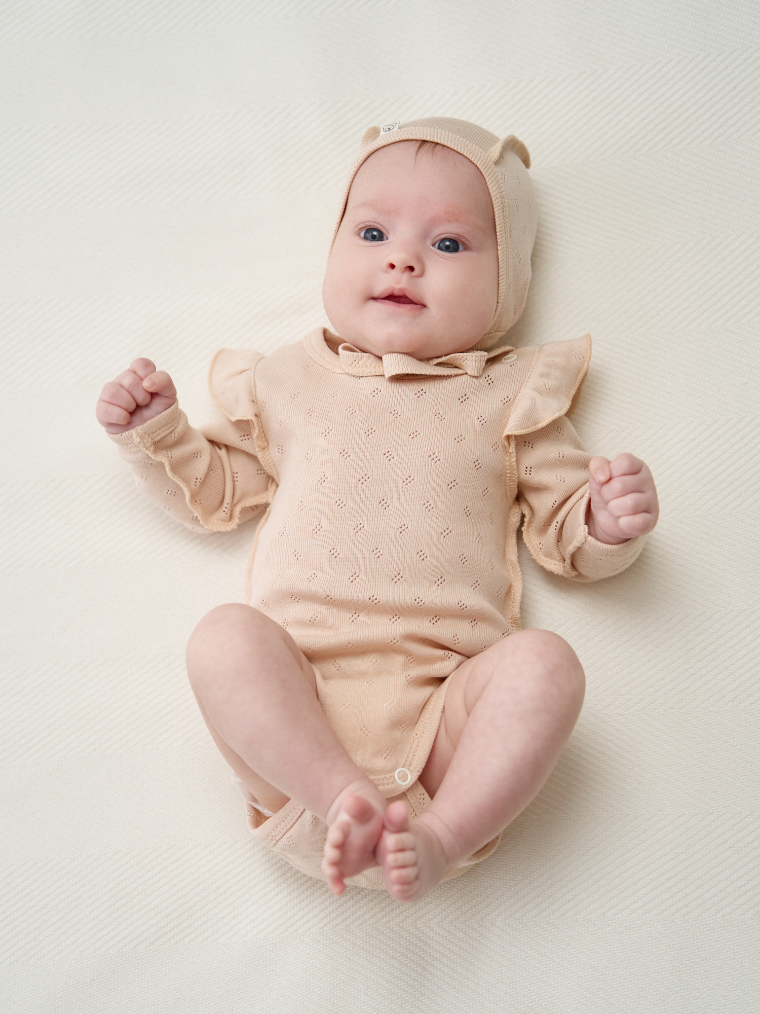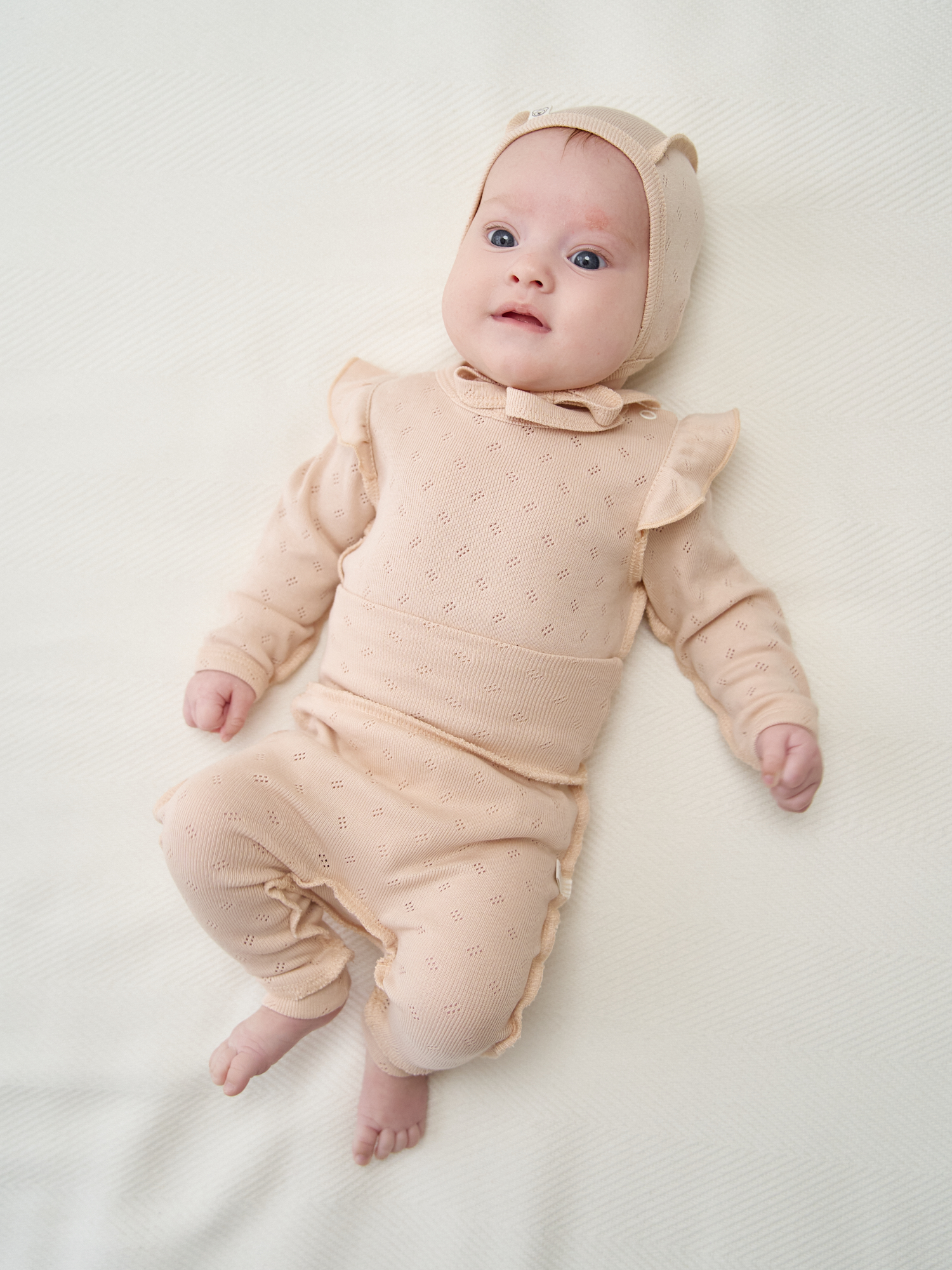 Ажурный хлопковый трикотаж приятен к телу и позволяет коже дышать.