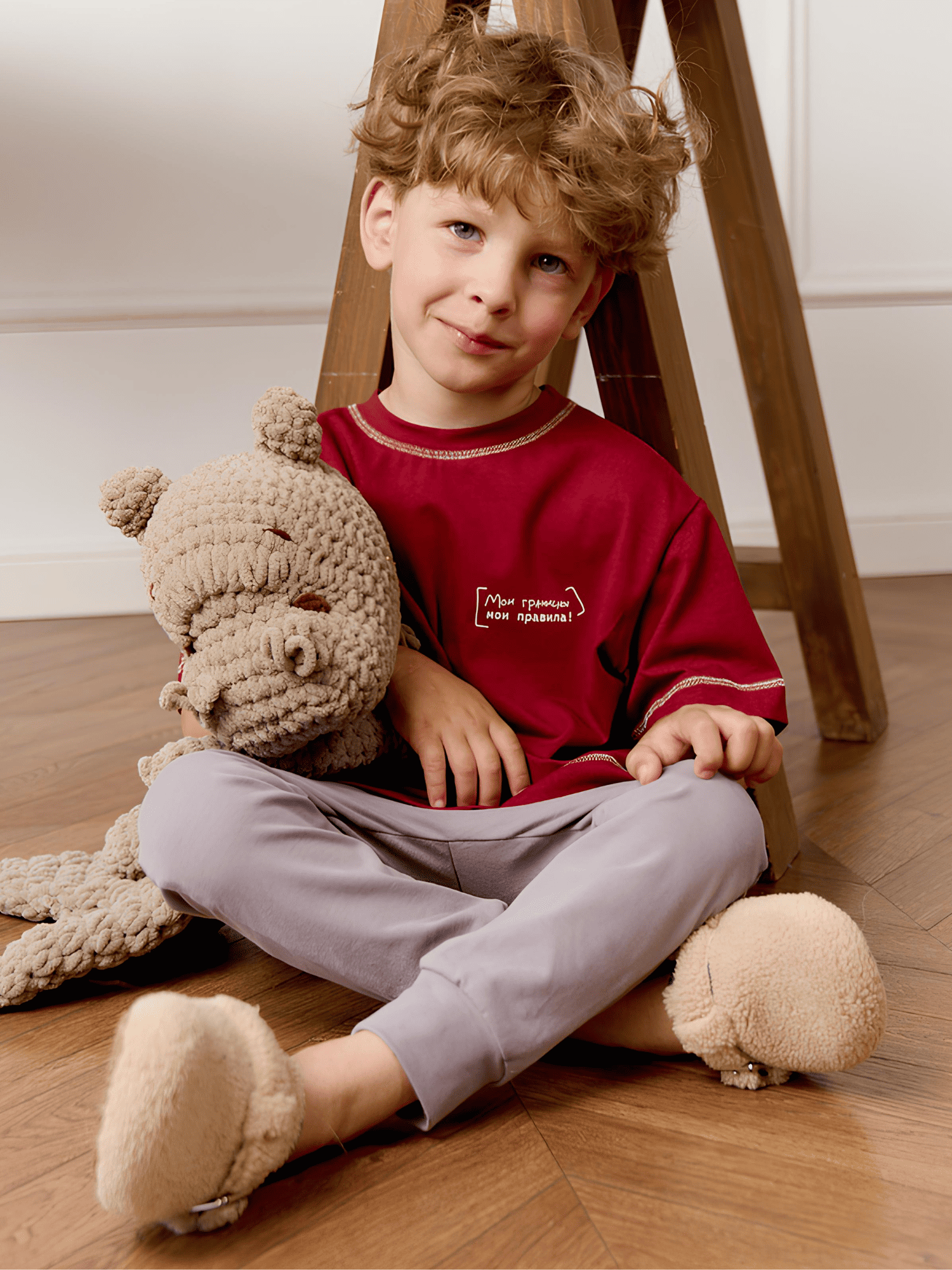 Модель легко надевать утром самостоятельно, а манжеты по низу не дают штанинам задираться во время движения или игр на площадке.