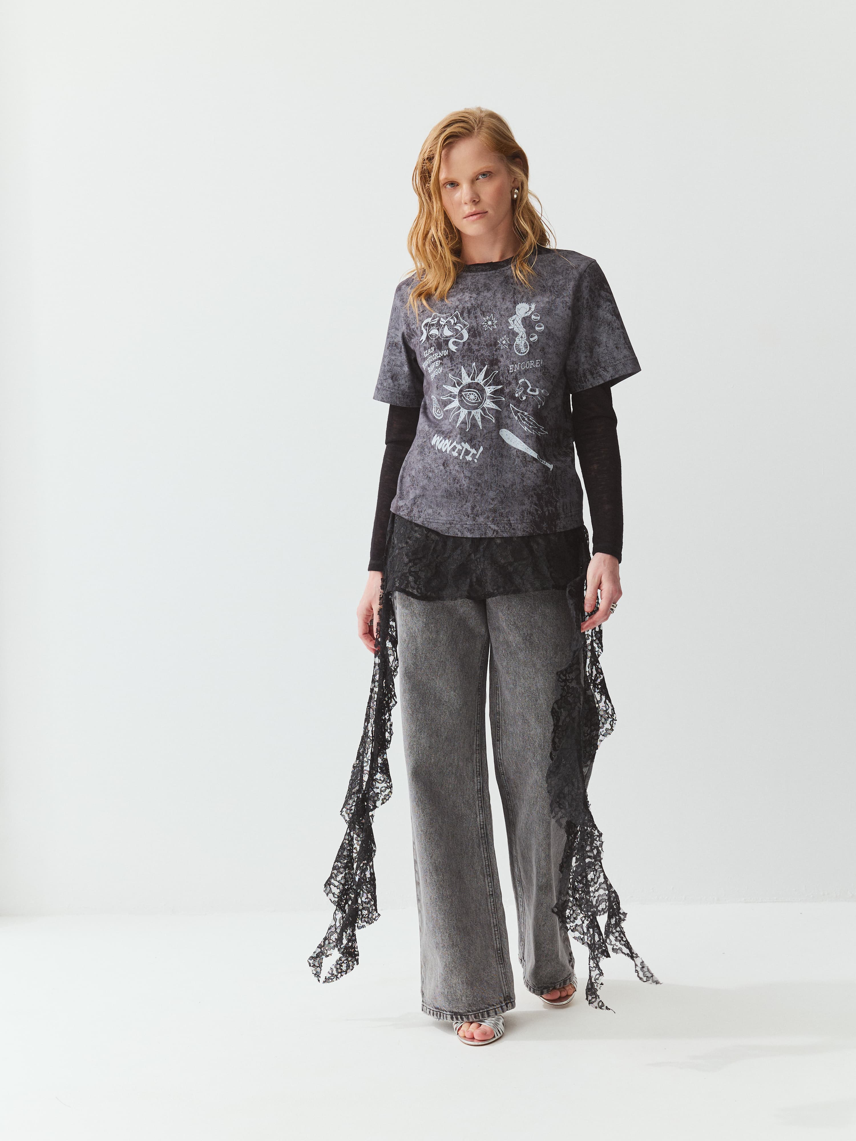 Женская футболка свободного кроя и среднего объёма дарит комфорт и отлично садится по фигуре.