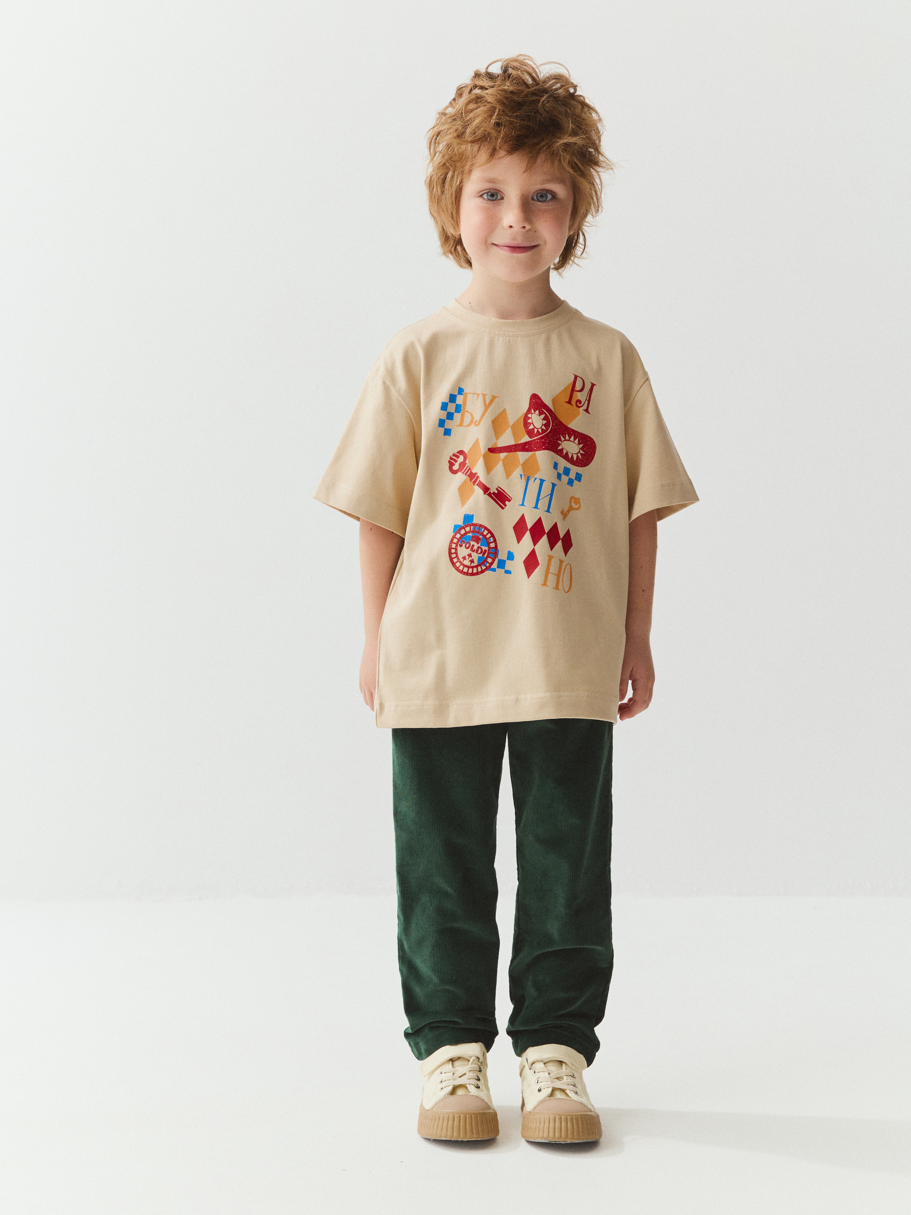 Футболка отлично сочетается с джинсами, шортами, юбками или леггинсами – легко собрать комплект для детсада, прогулки или поездки к бабушке.