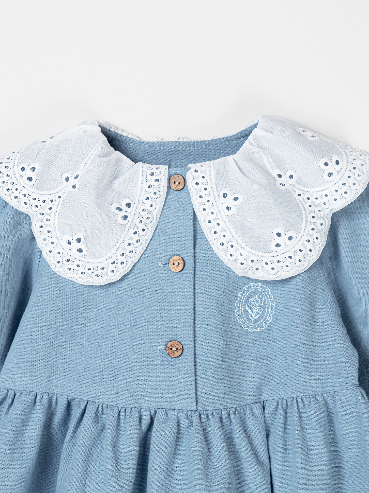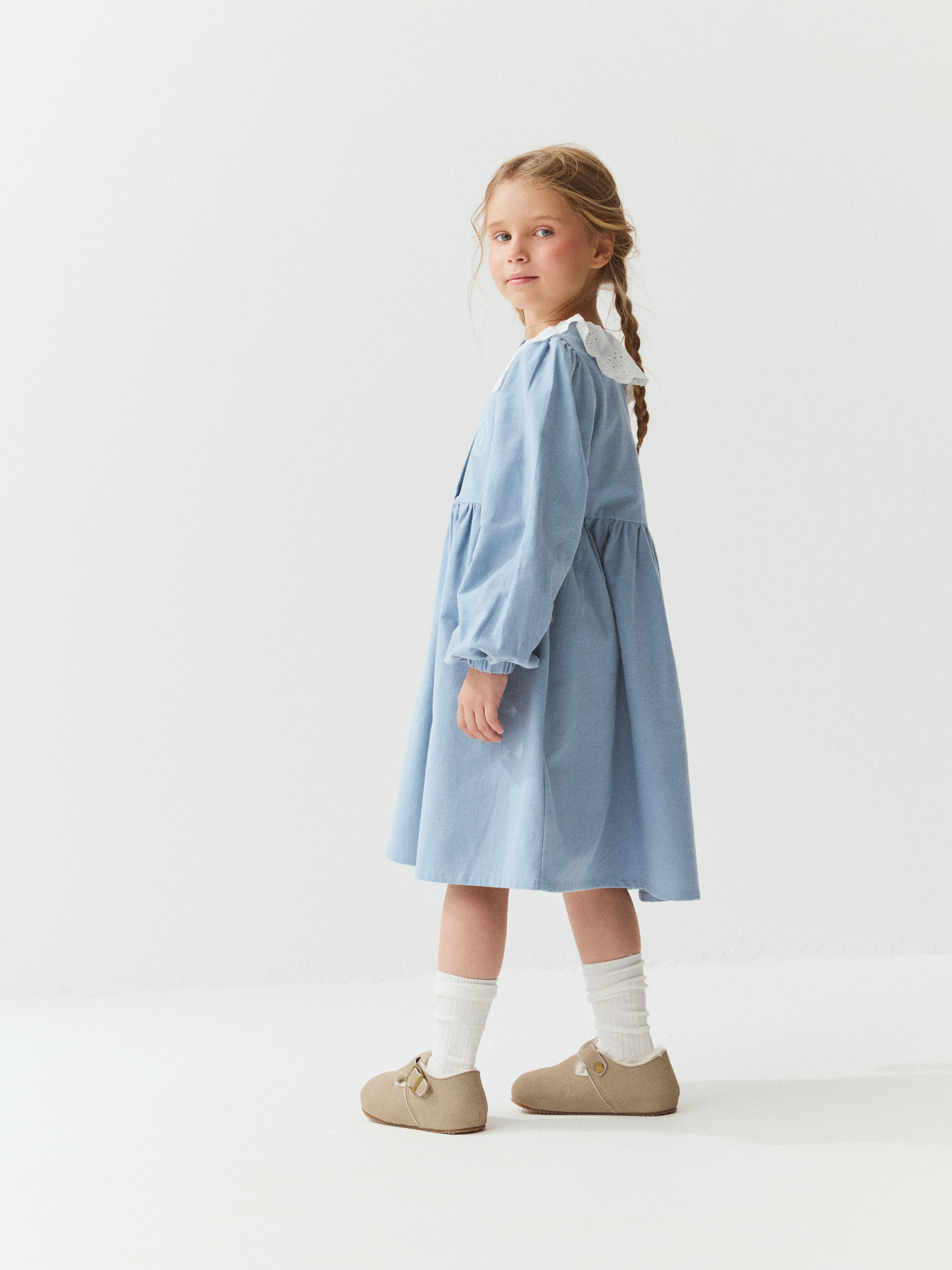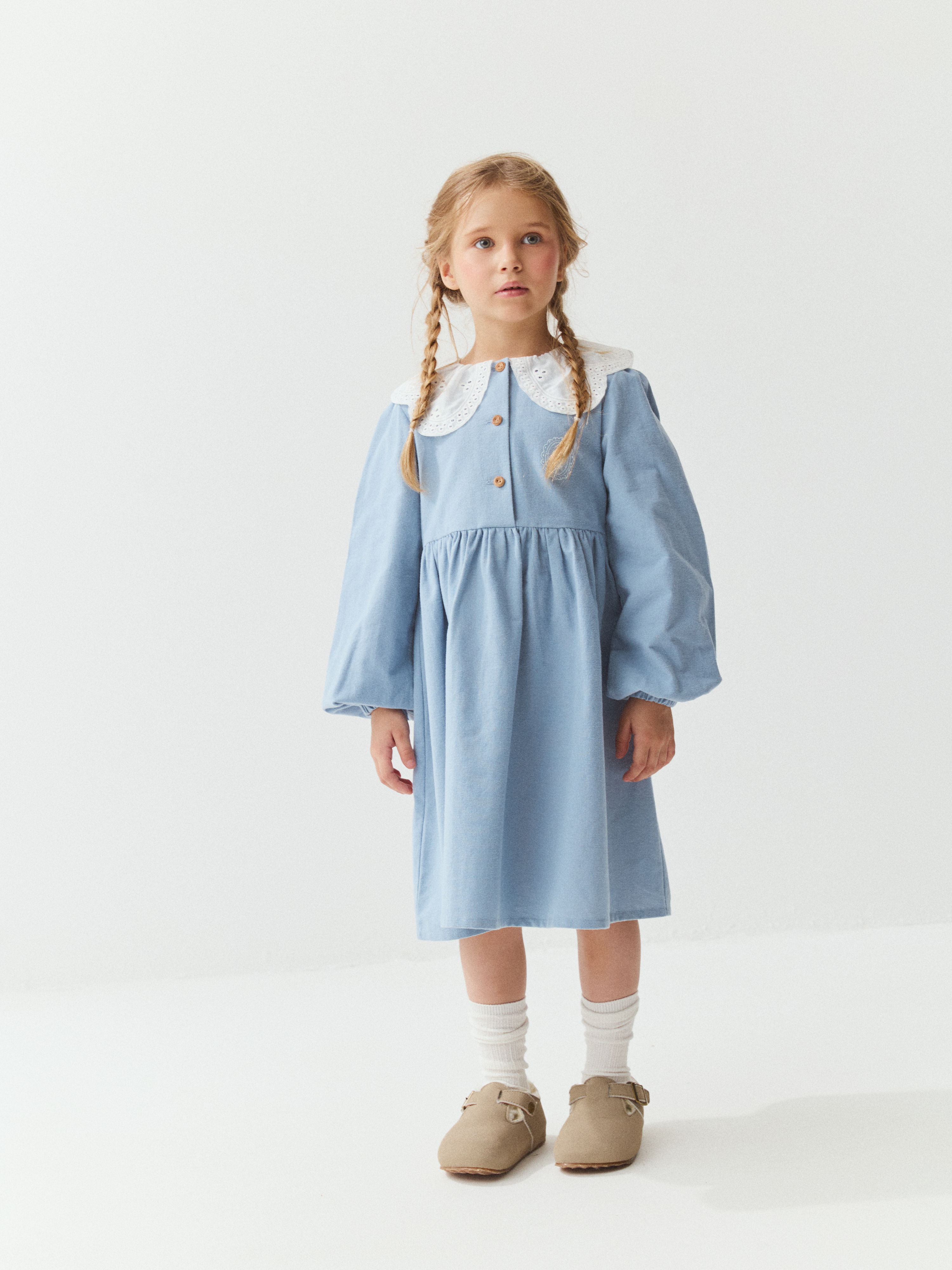 Ажурный воротник и красивая вышивка делают платье особенно нежным и нарядным.