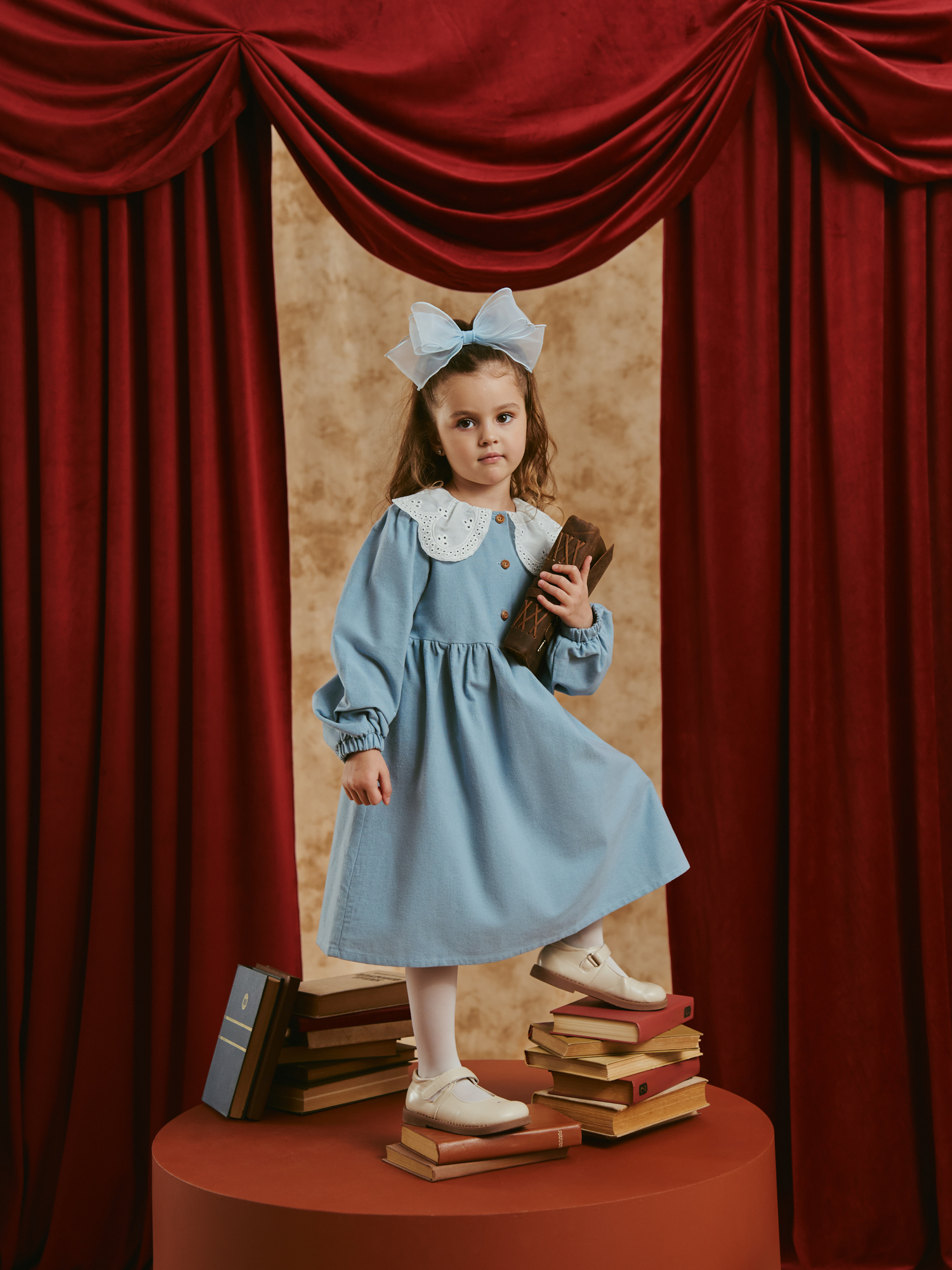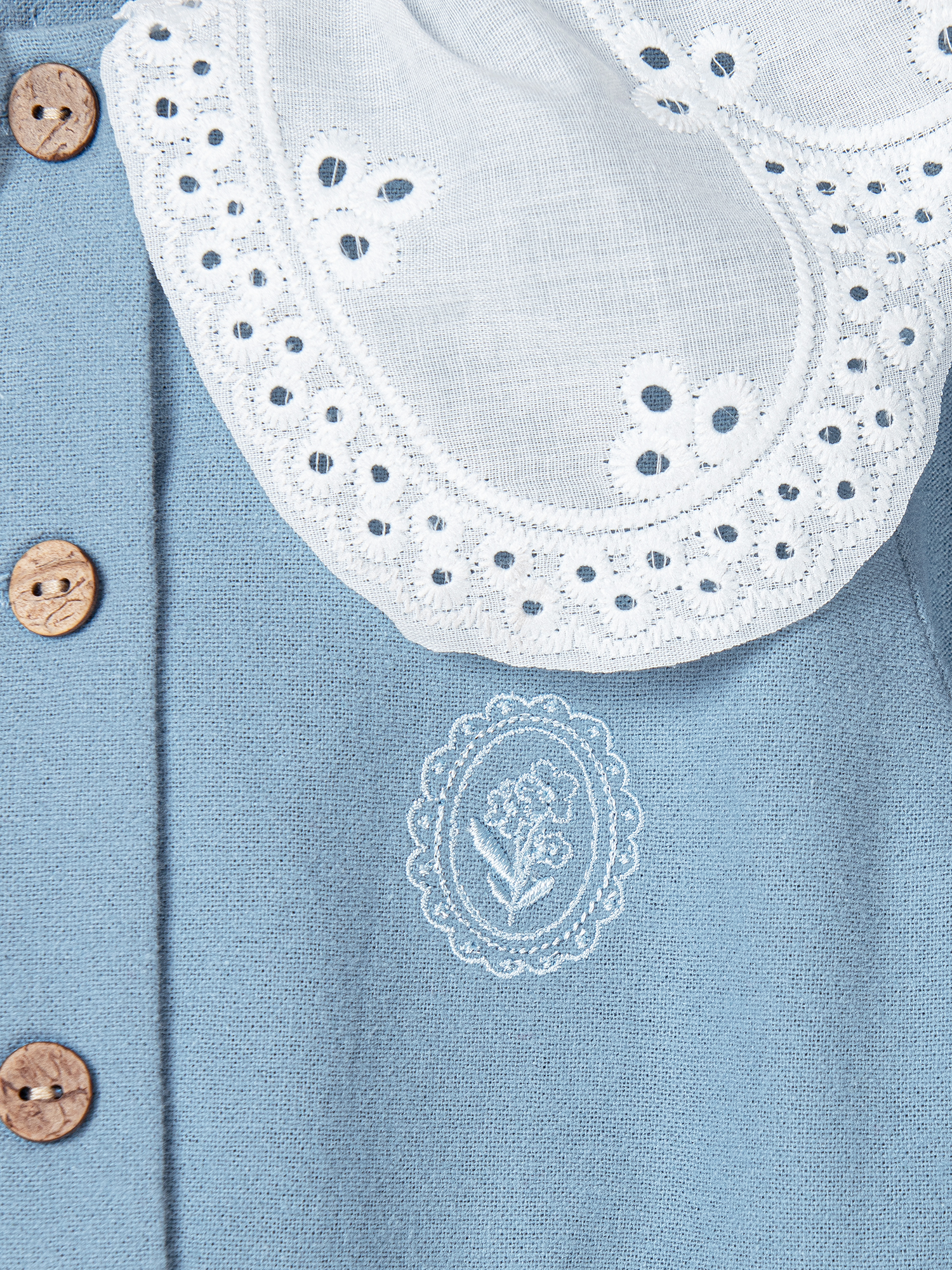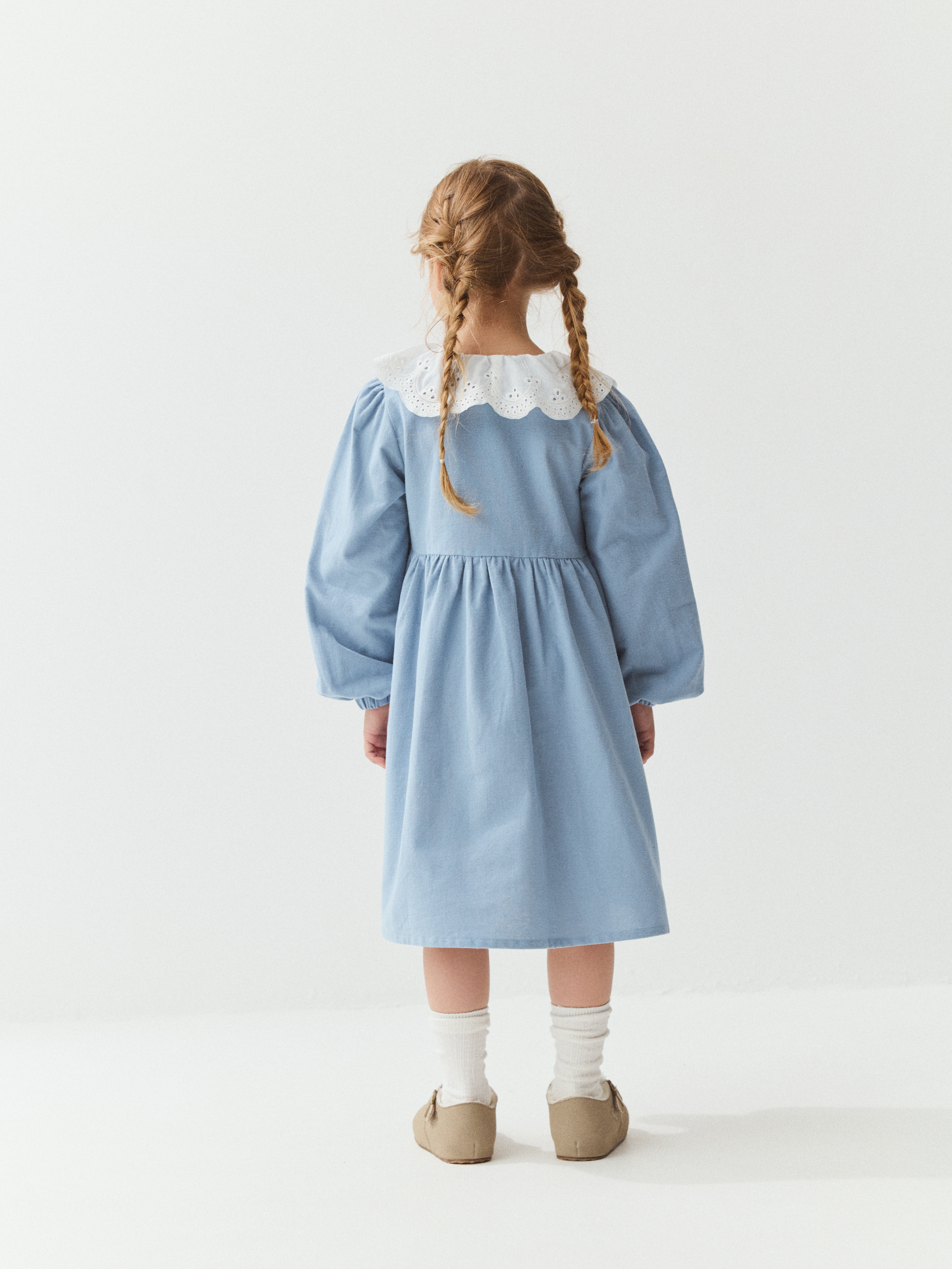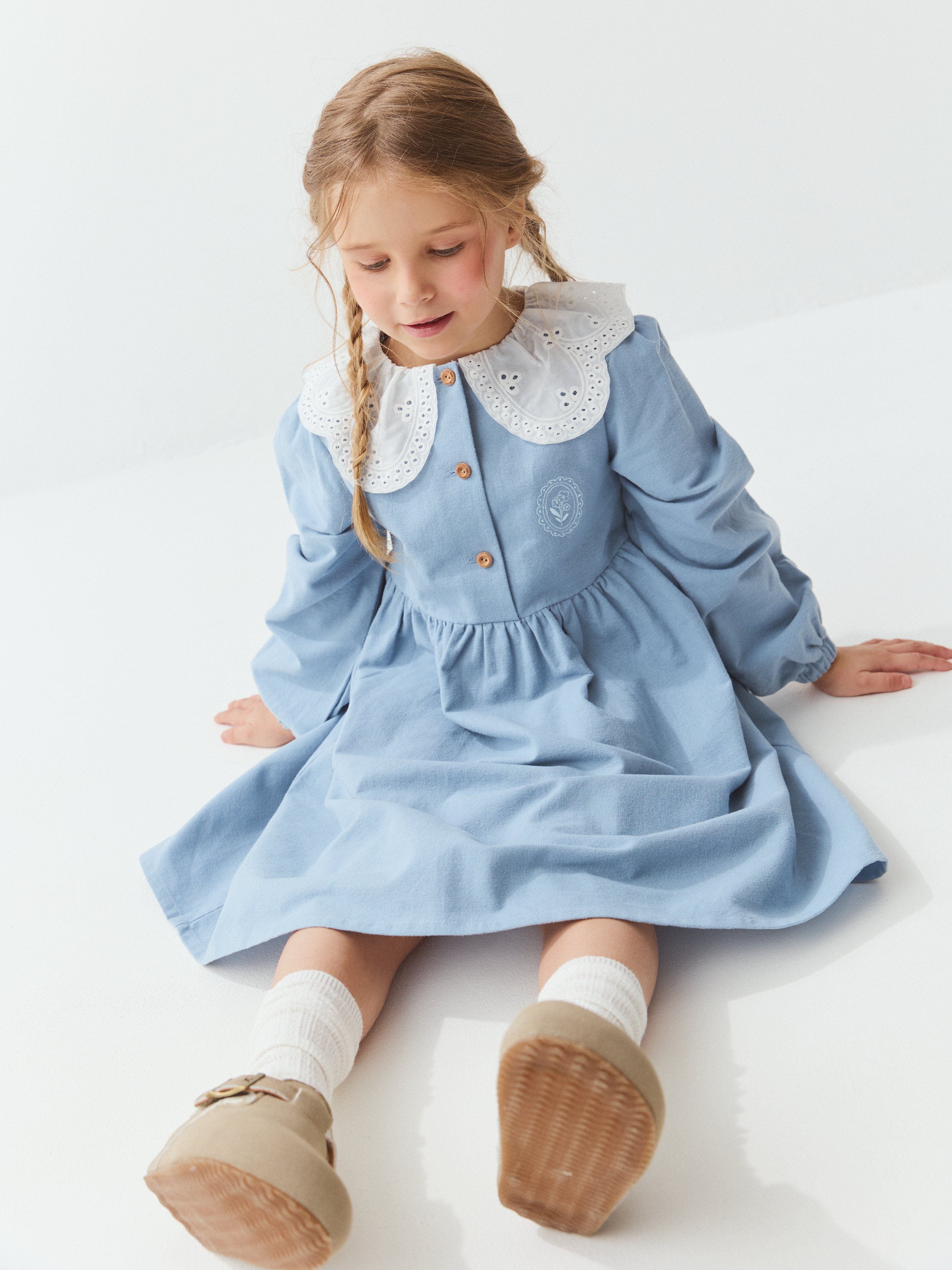 Ажурный воротник и красивая вышивка делают платье особенно нежным и нарядным.