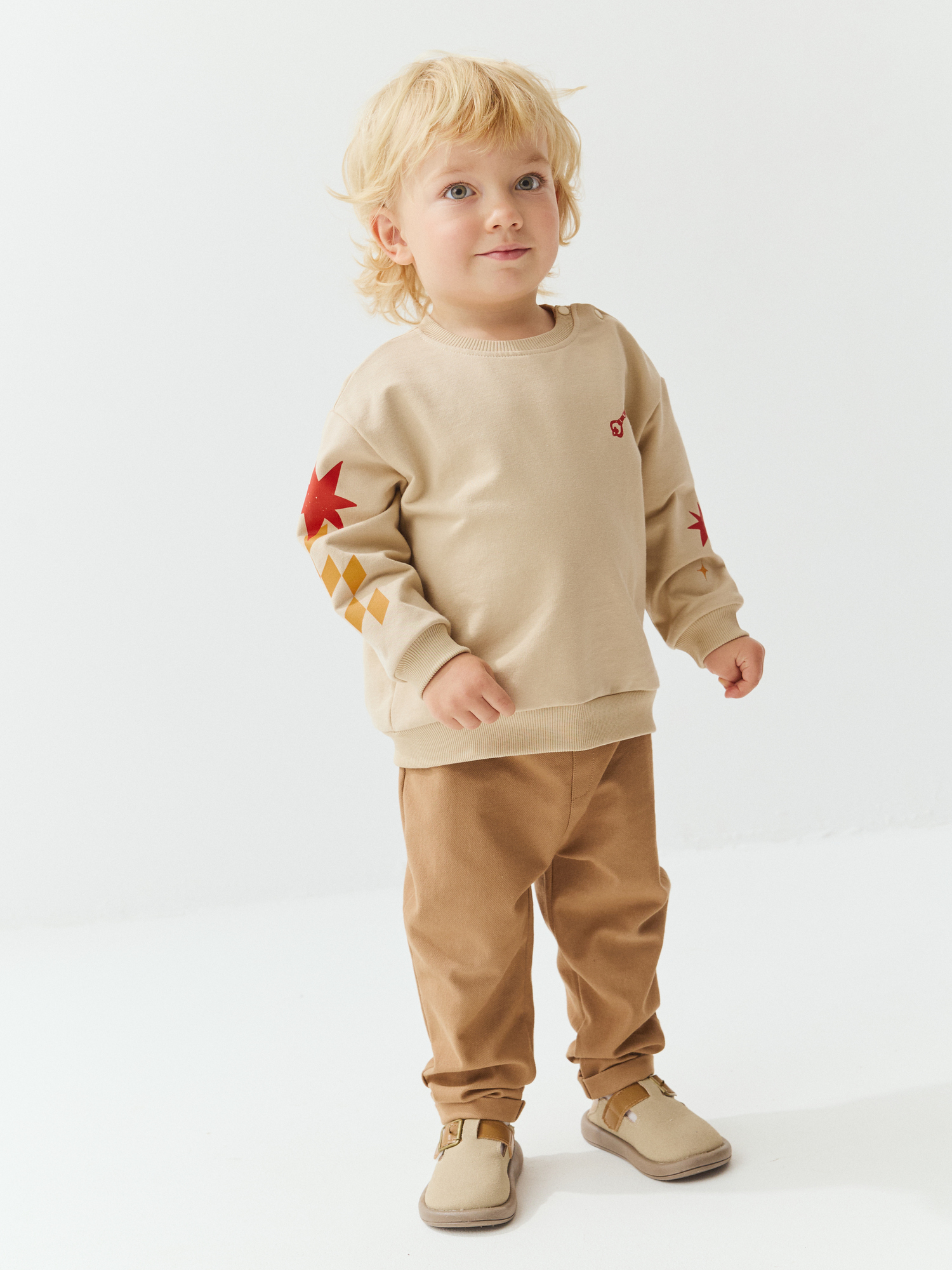Эластичные манжеты и пояс из кашкорсе нежно облегают, держат форму, не жмут и не заворачиваются во время активных движений и игр.