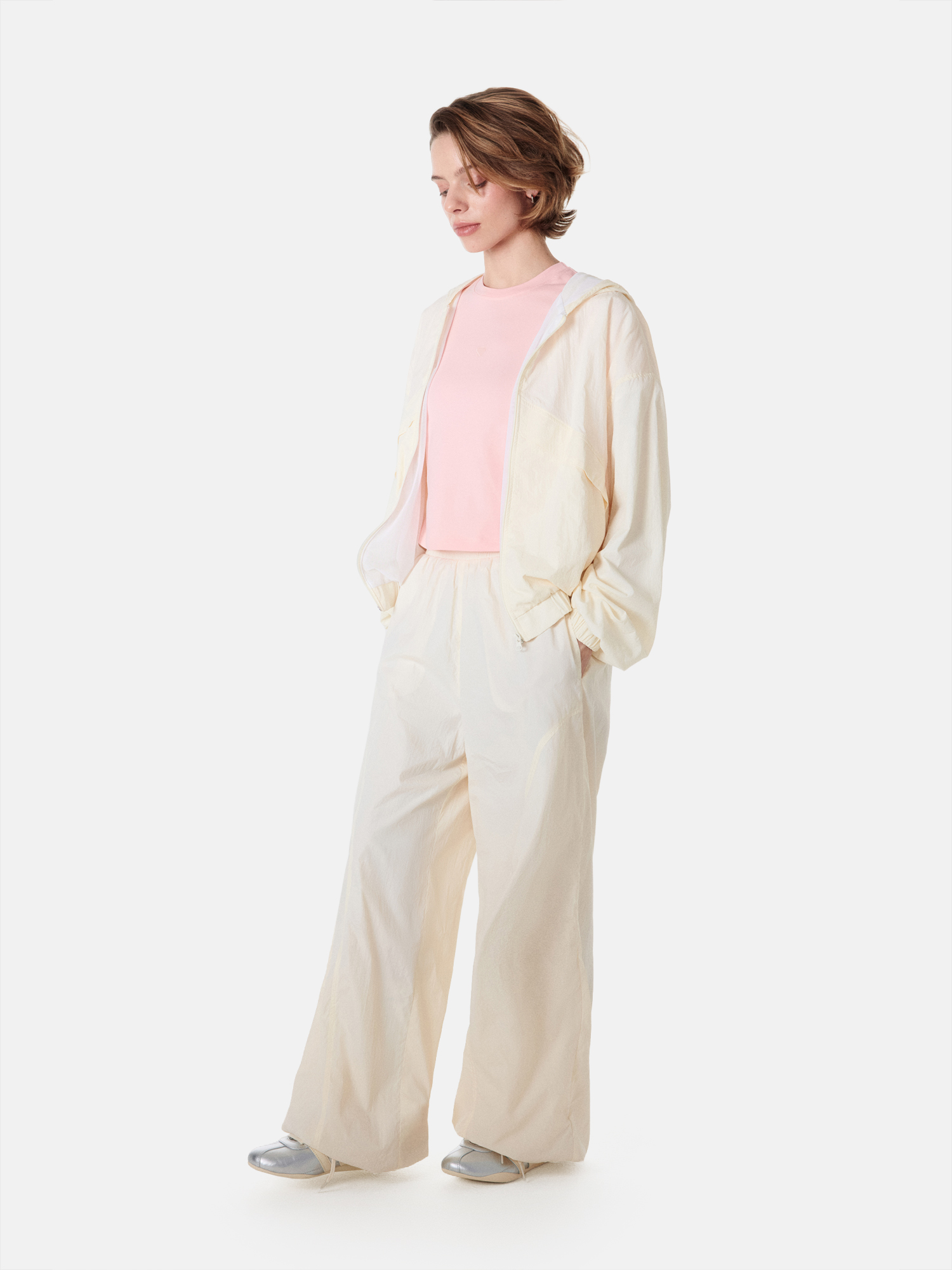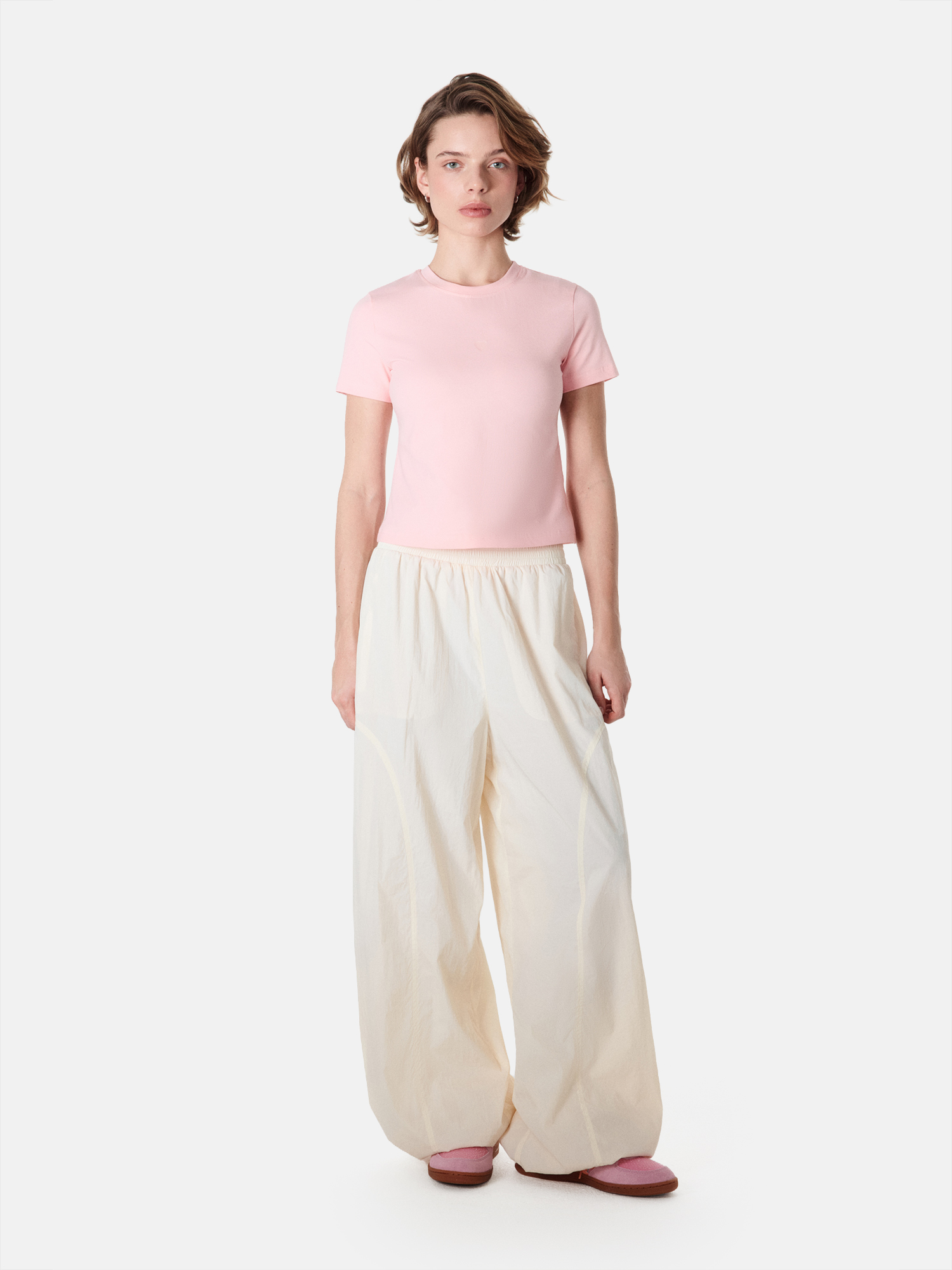 Брюки-оверсайз создают расслабленный спортивный вид.