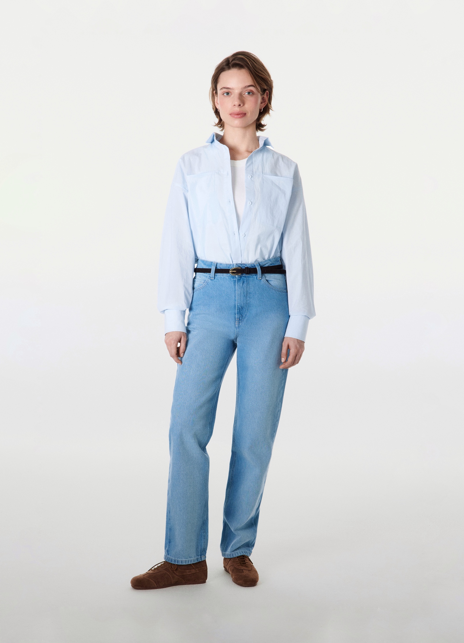 Прямой крой и умеренно высокая посадка.